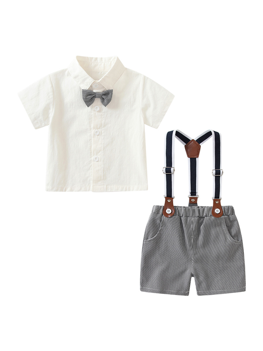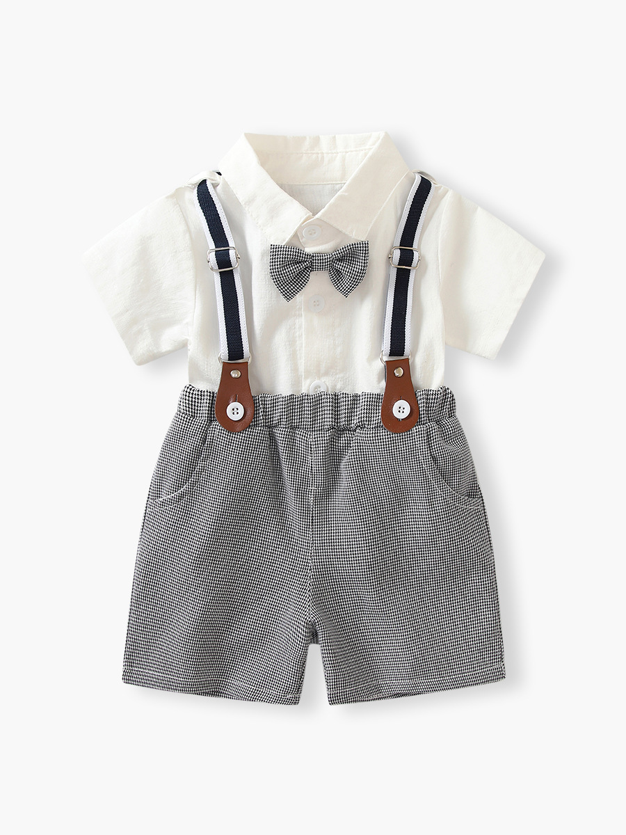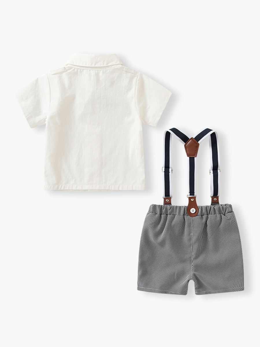 Korean Style Dress for Boys 2026 Summer New Children's Dress Two-Piece Set for Going Out Gentleman White Short-Sleeved Shorts Suit