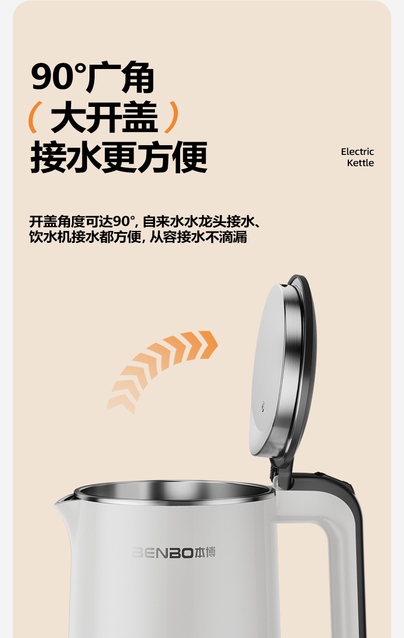 Snow silver white 1.8l [precise temperature control + safe anti-dry burning + double-layer anti-scalding + three-layer temperature locking + food-grade stainless steel]