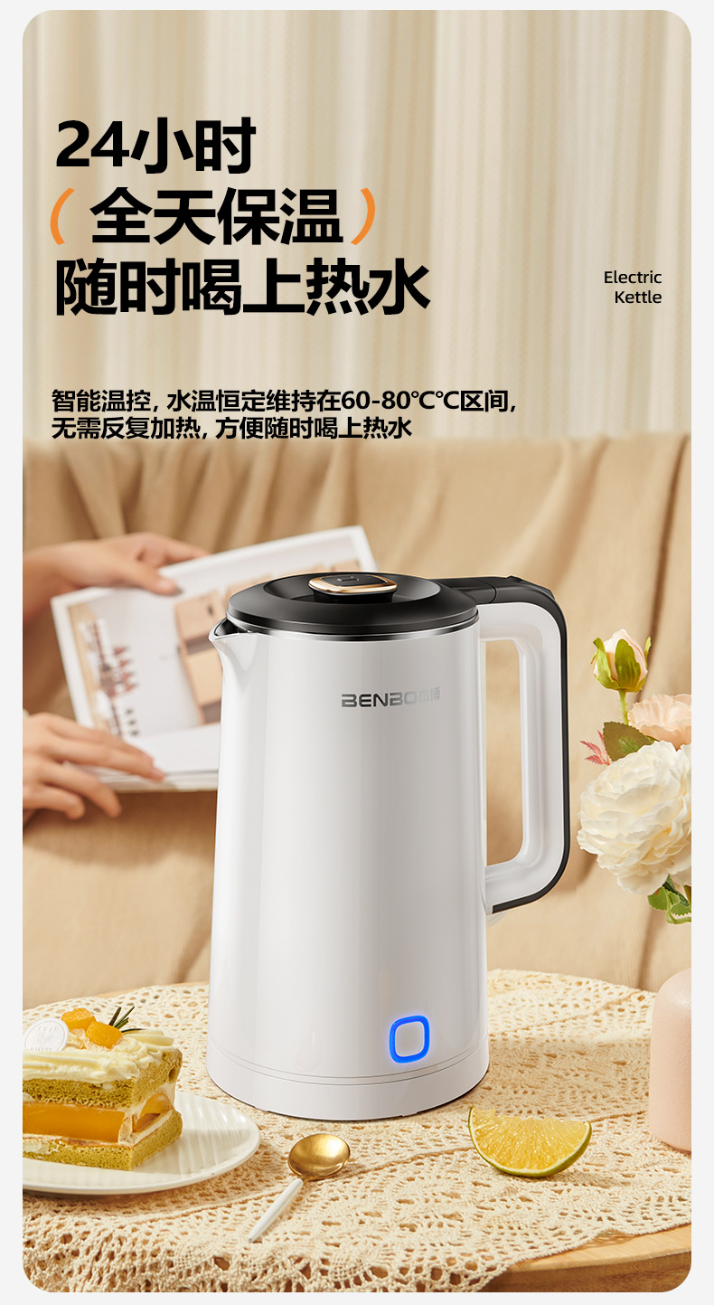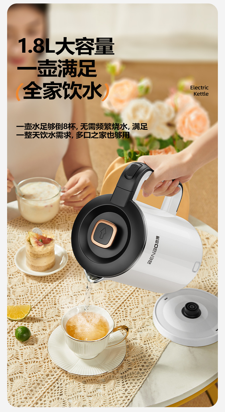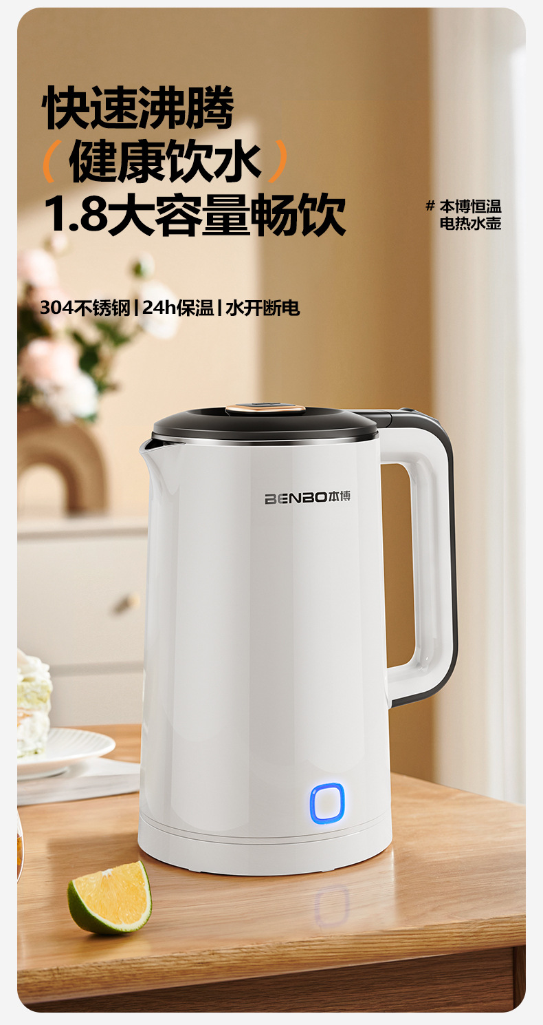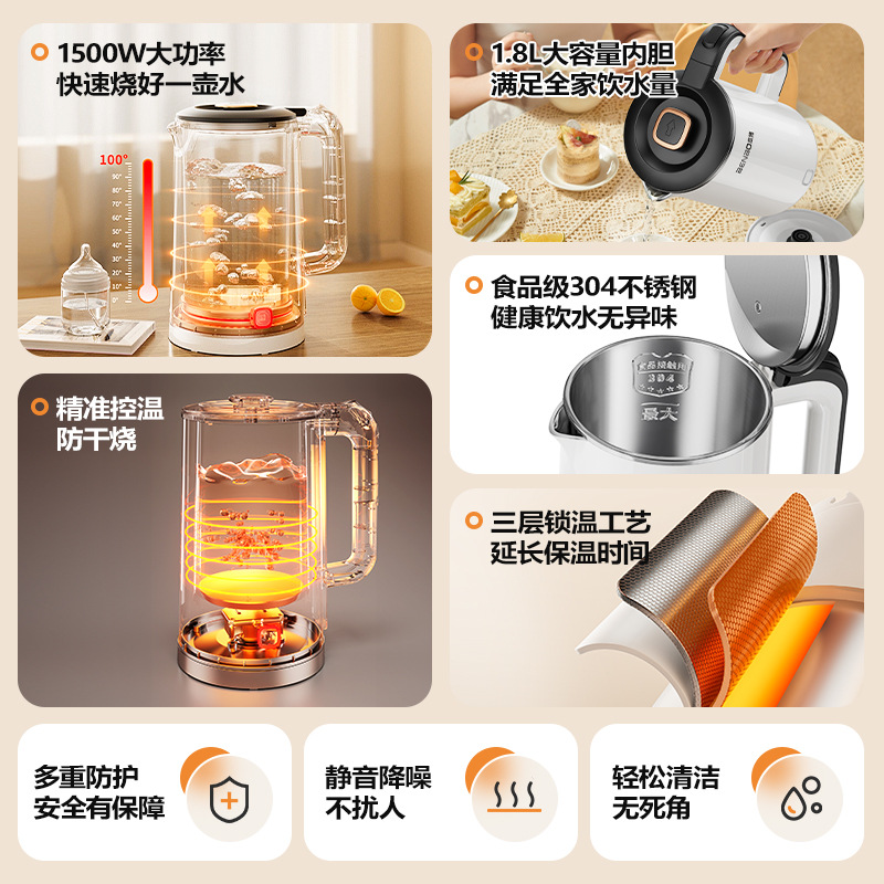 Pearl white 1.8l [precise temperature control + safe anti-dry burning + double-layer anti-scalding + three-layer temperature locking + food-grade stainless steel]