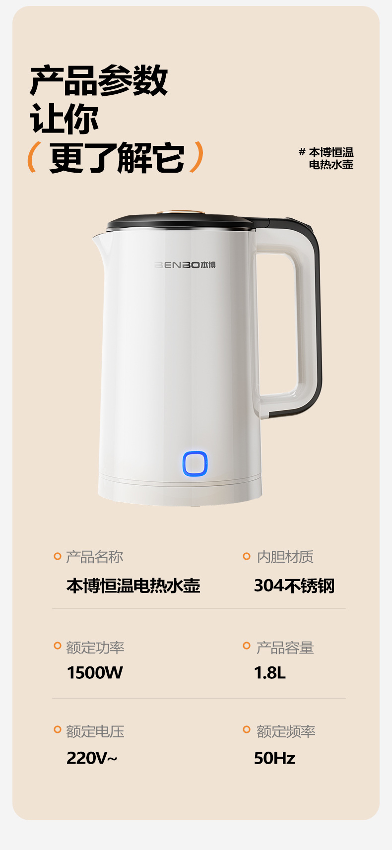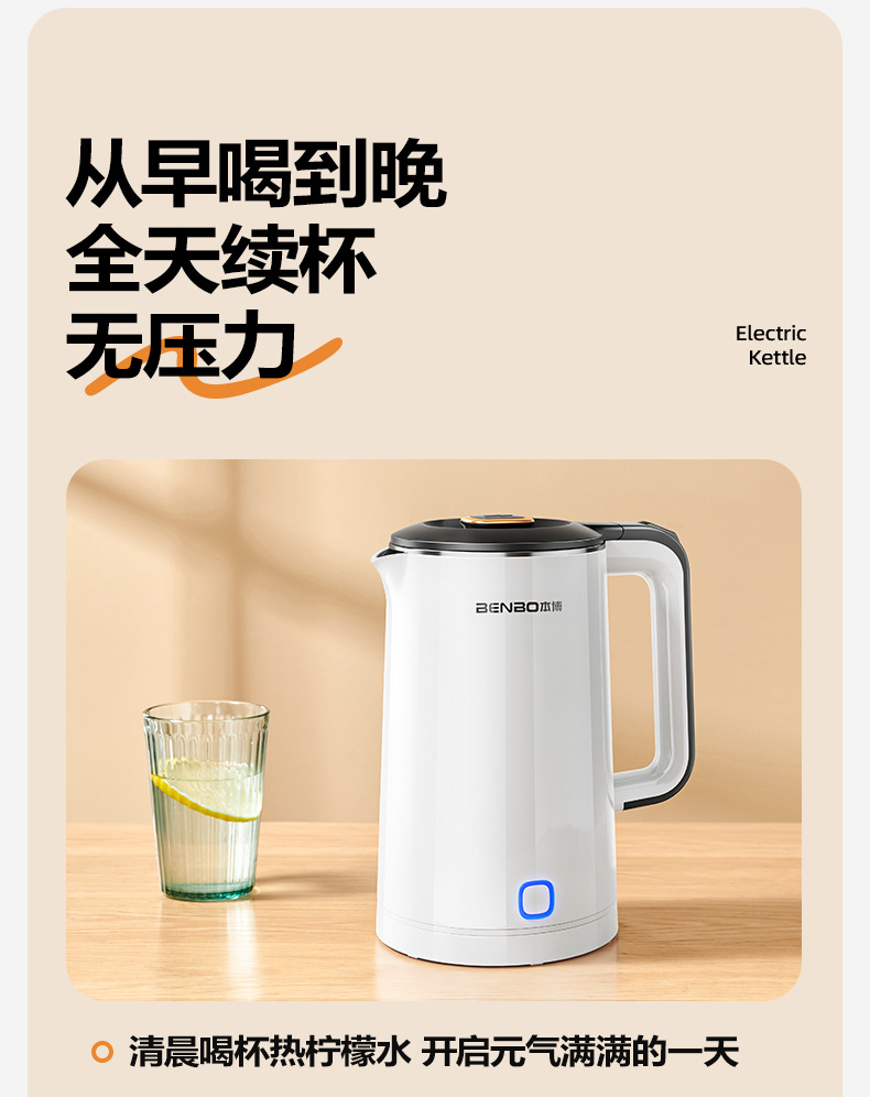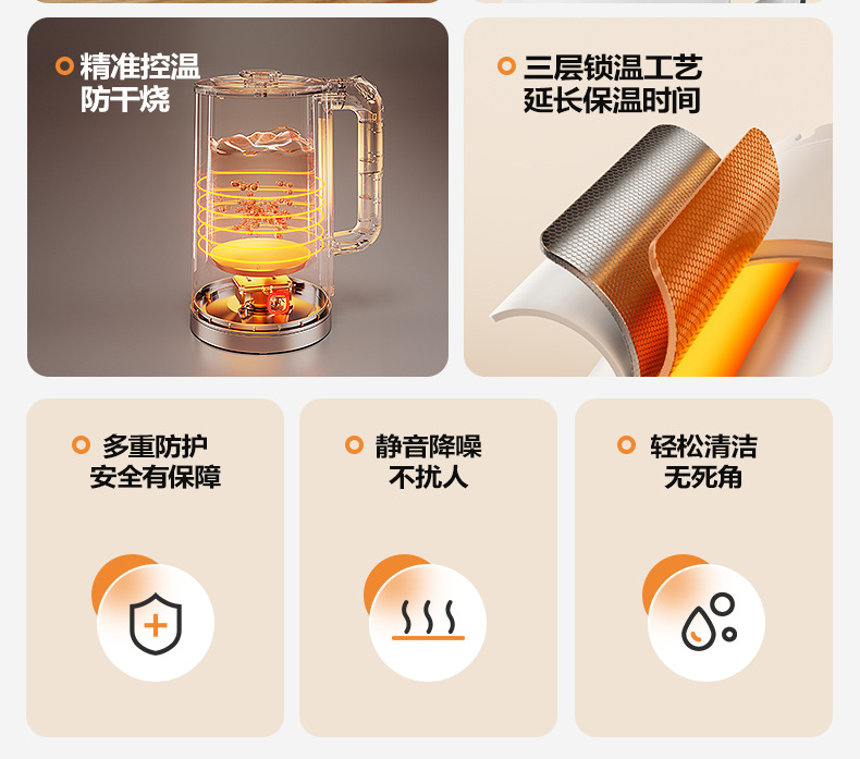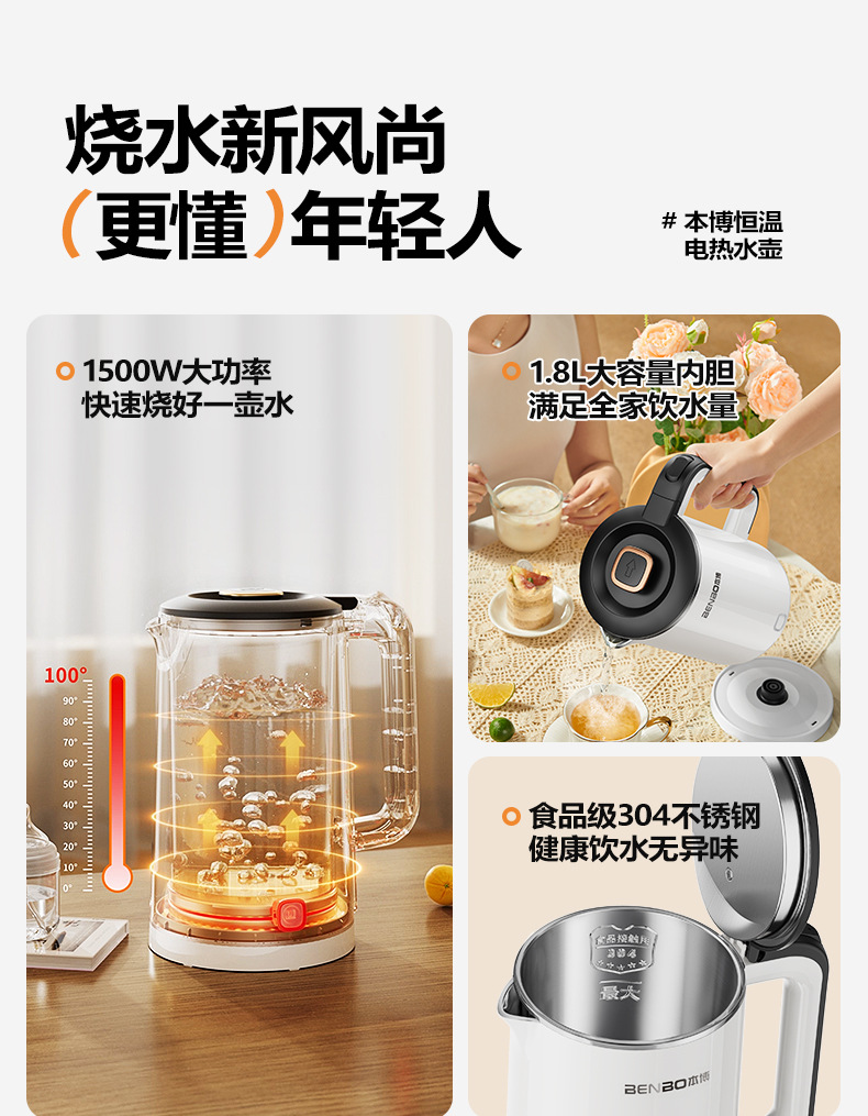 Pearl white 1.8l [precise temperature control + safe anti-dry burning + double-layer anti-scalding + three-layer temperature locking + food-grade stainless steel]