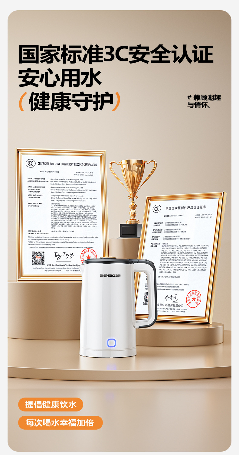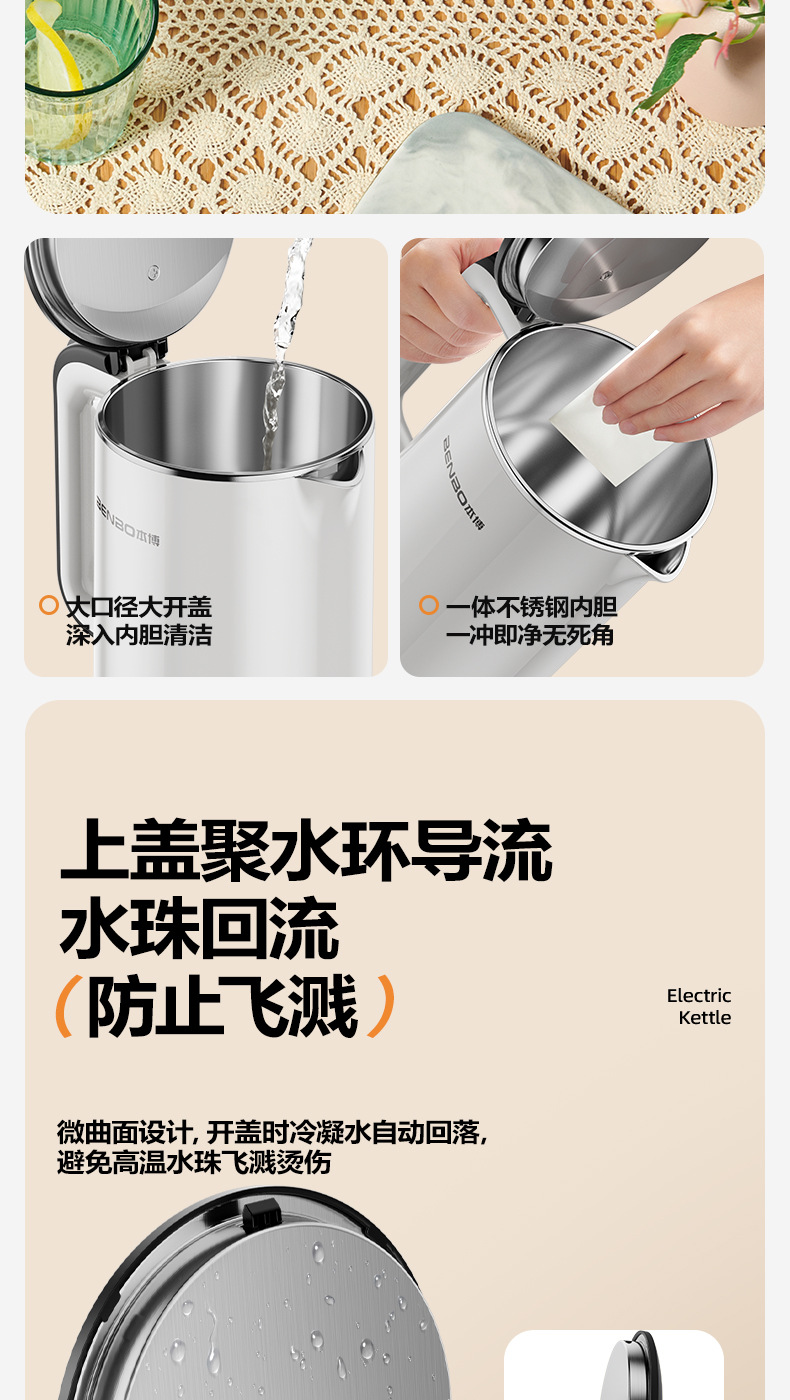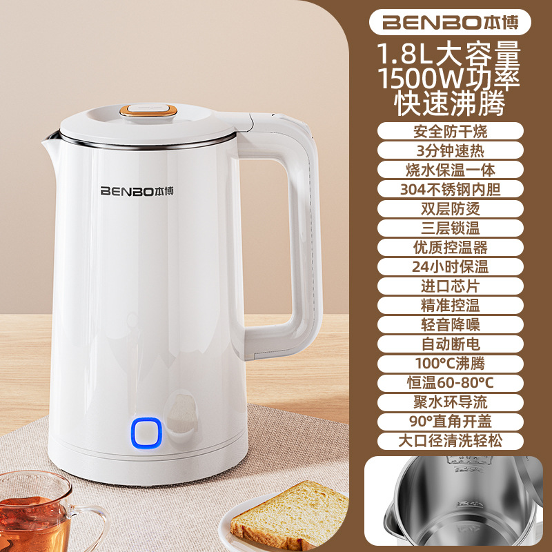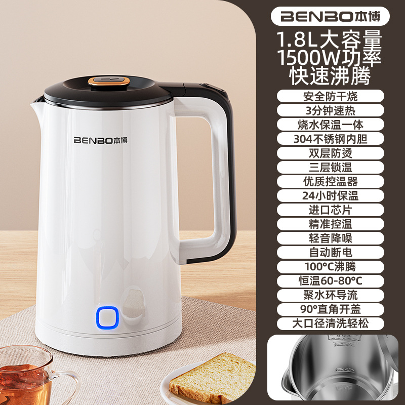 Upgraded pearl white 1.8l [safe anti-dry burning + precise temperature control + double-layer anti-scalding + triple-layer temperature locking + food-grade stainless steel]