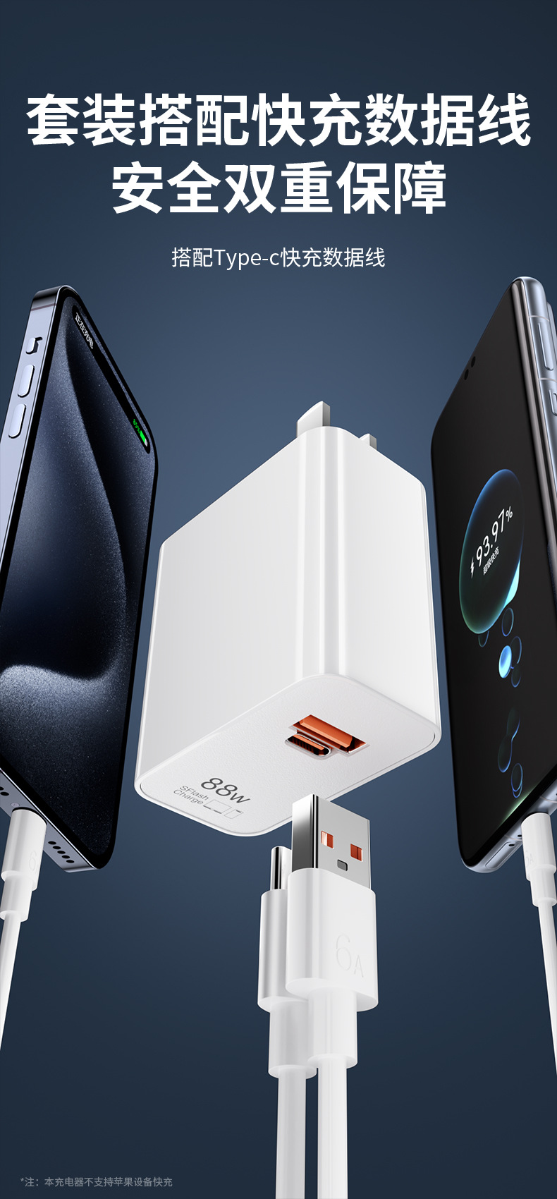 88w super fast charging [c-c copper clad aluminum] set 1m