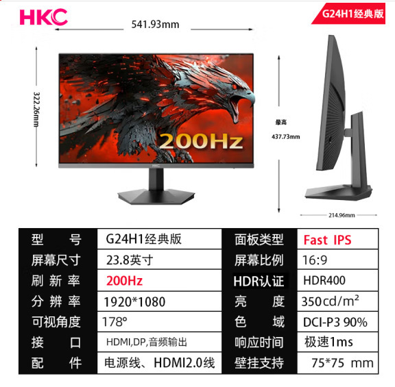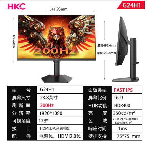 G24h1 classic 23.8inch 1k 200hz without rotation lift