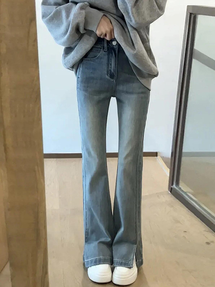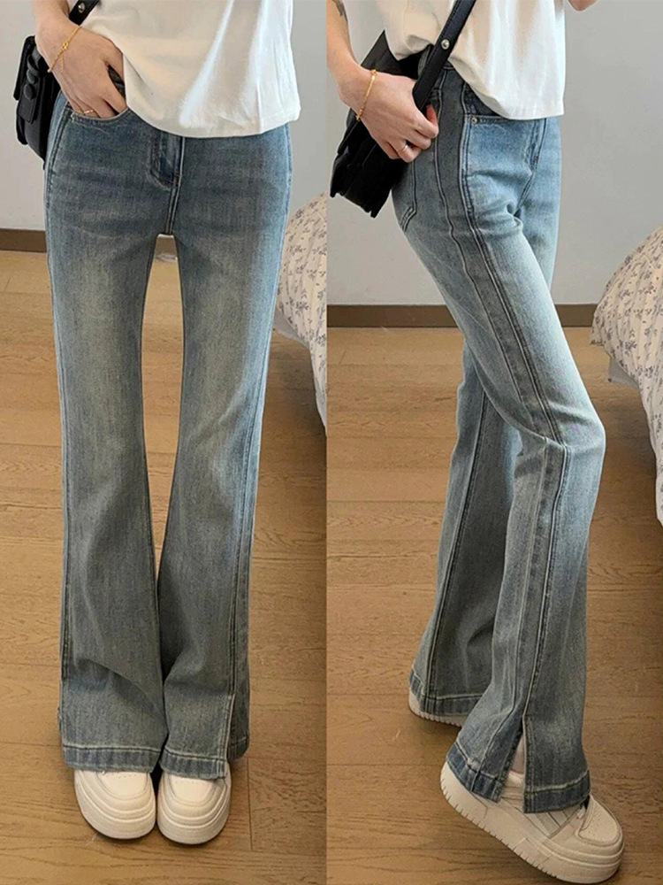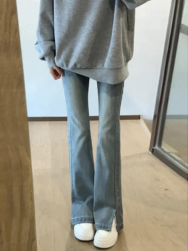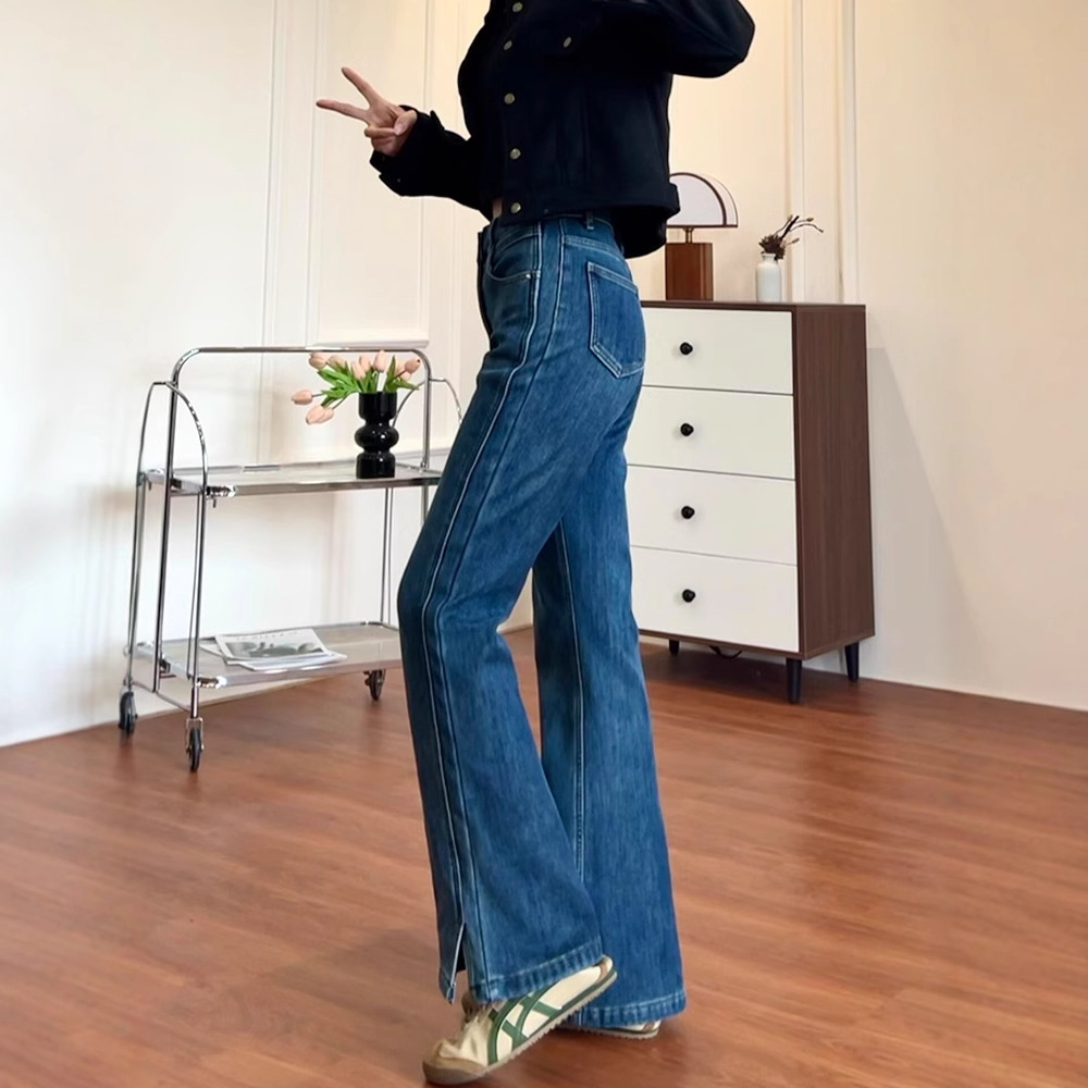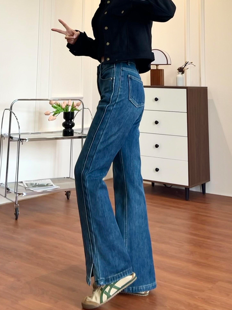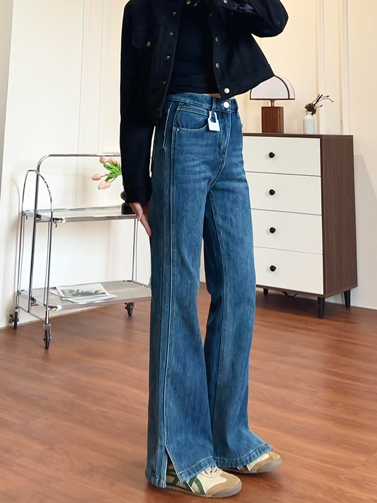 chubby girl Split Spicy Jeans Women's plus size Elastic Pear-shaped Body Thick Leg Wide Hip Skinny Pants Spring