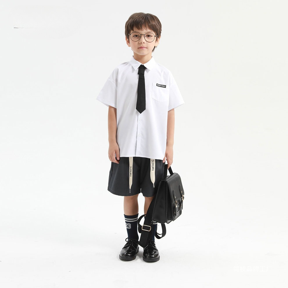 White shirt, gray shorts, tie, high quality anti-wrinkle and super cool material