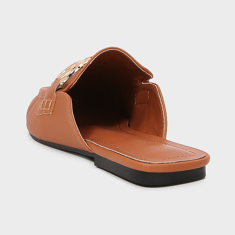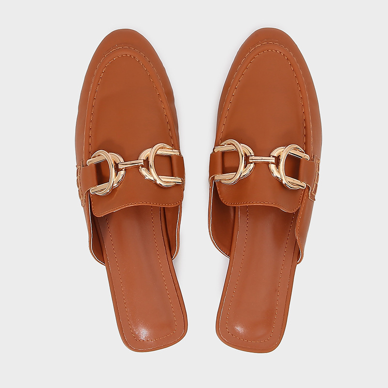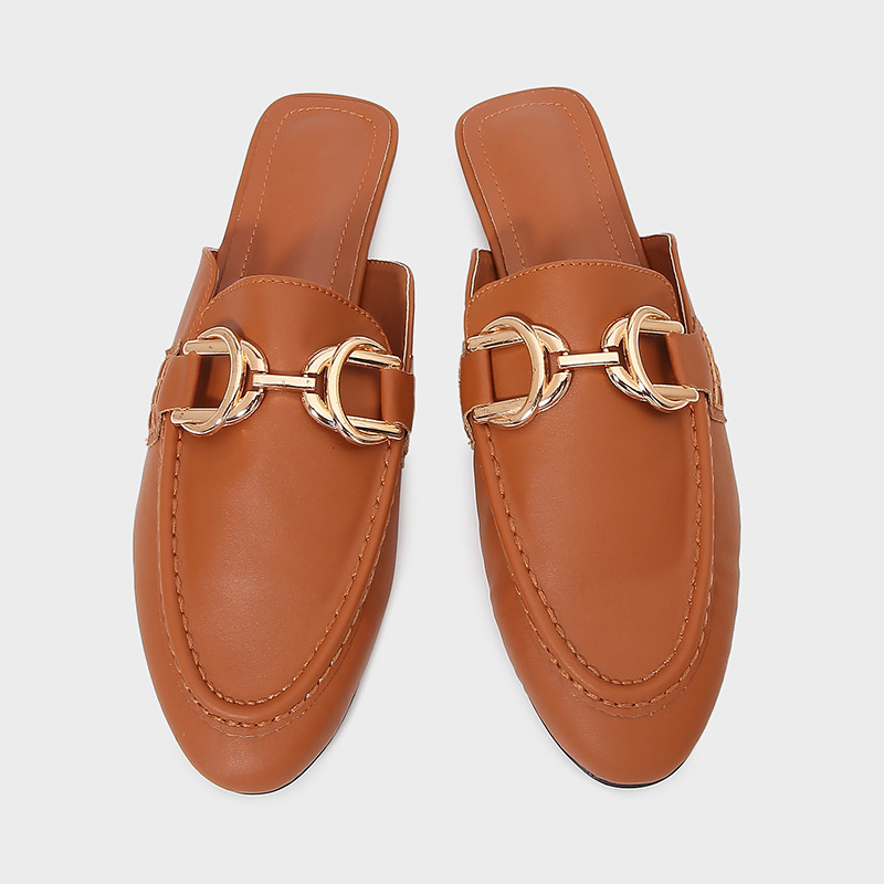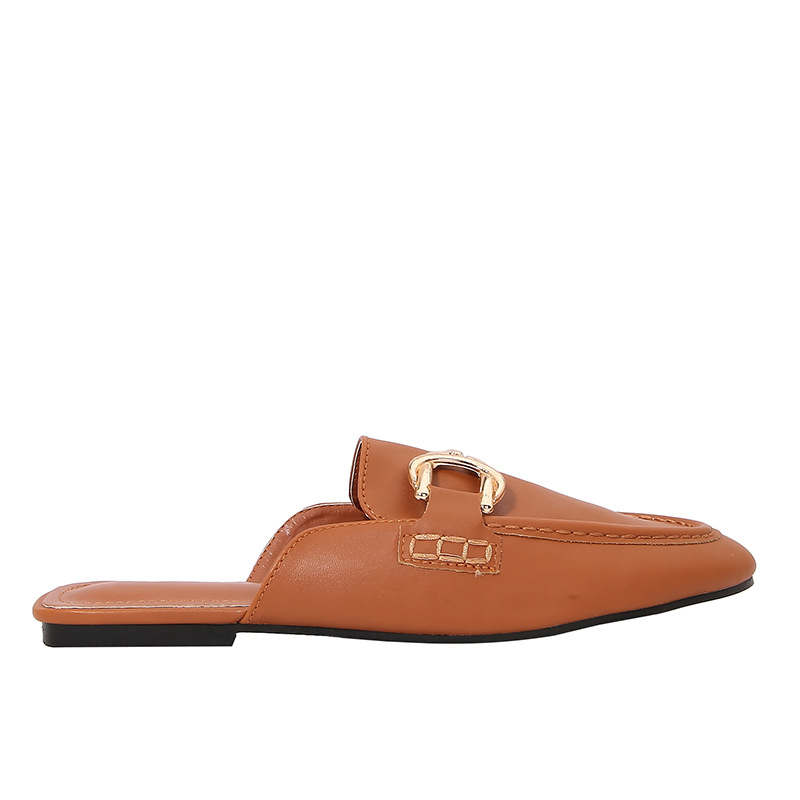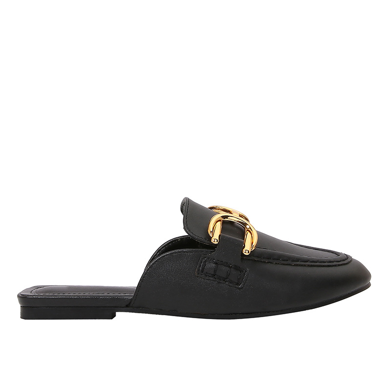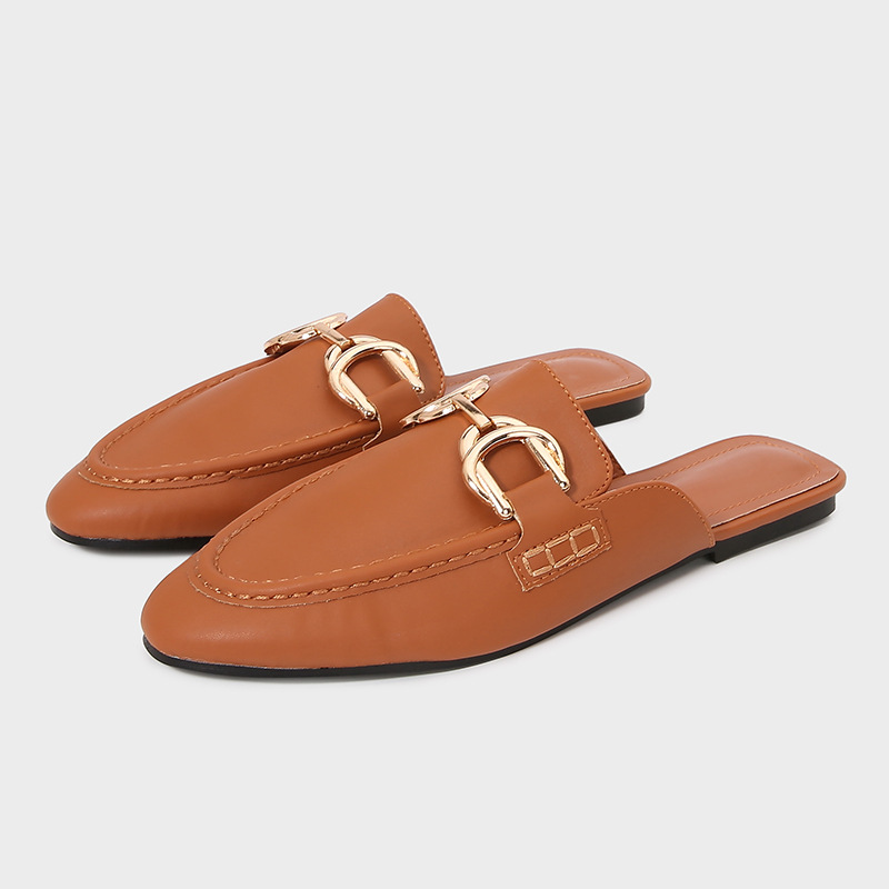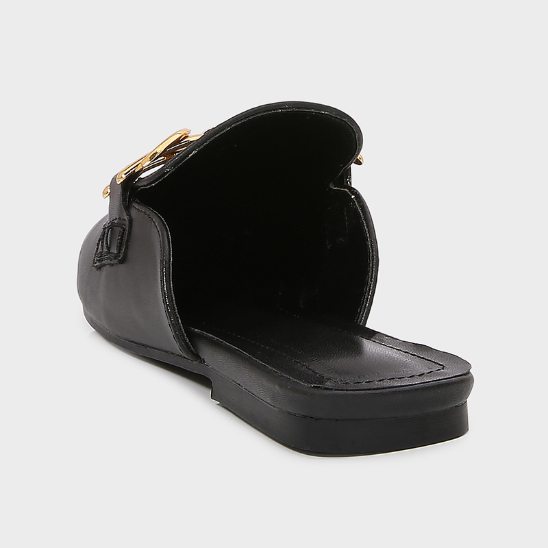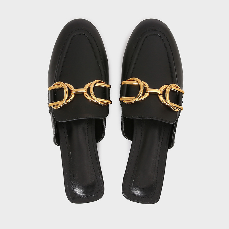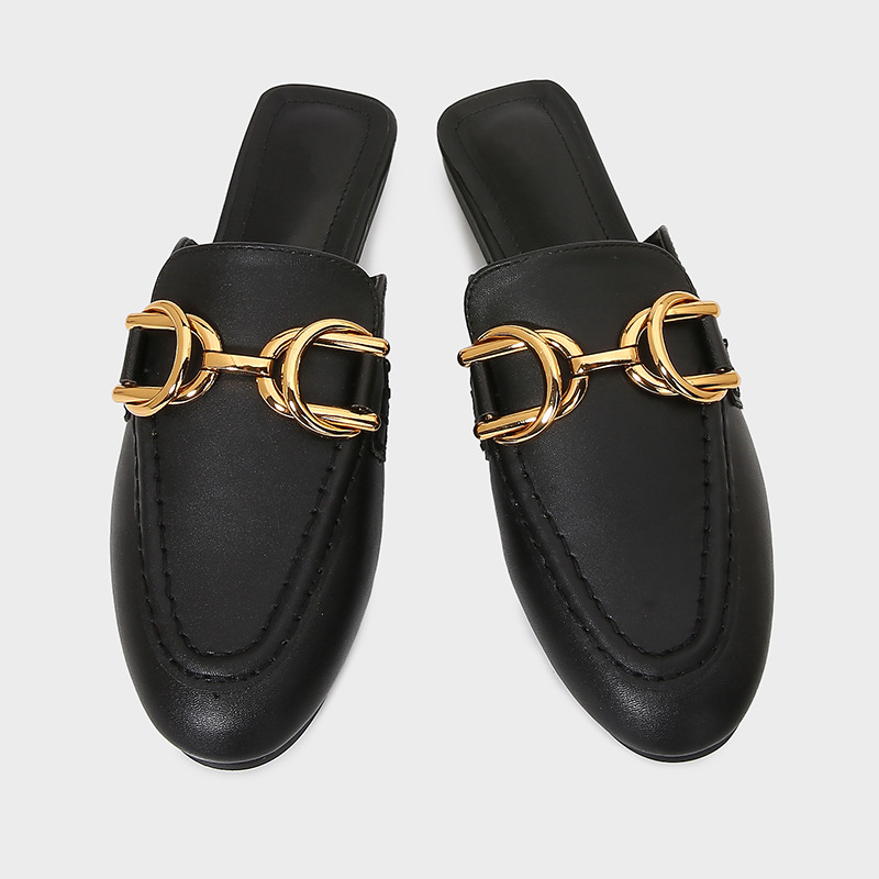ZA Slippers Women's Half Slippers 2025 Summer New Black Women's Shoes Metal Horsebit Buckle Sandals Flat Bottom Headed Sandals