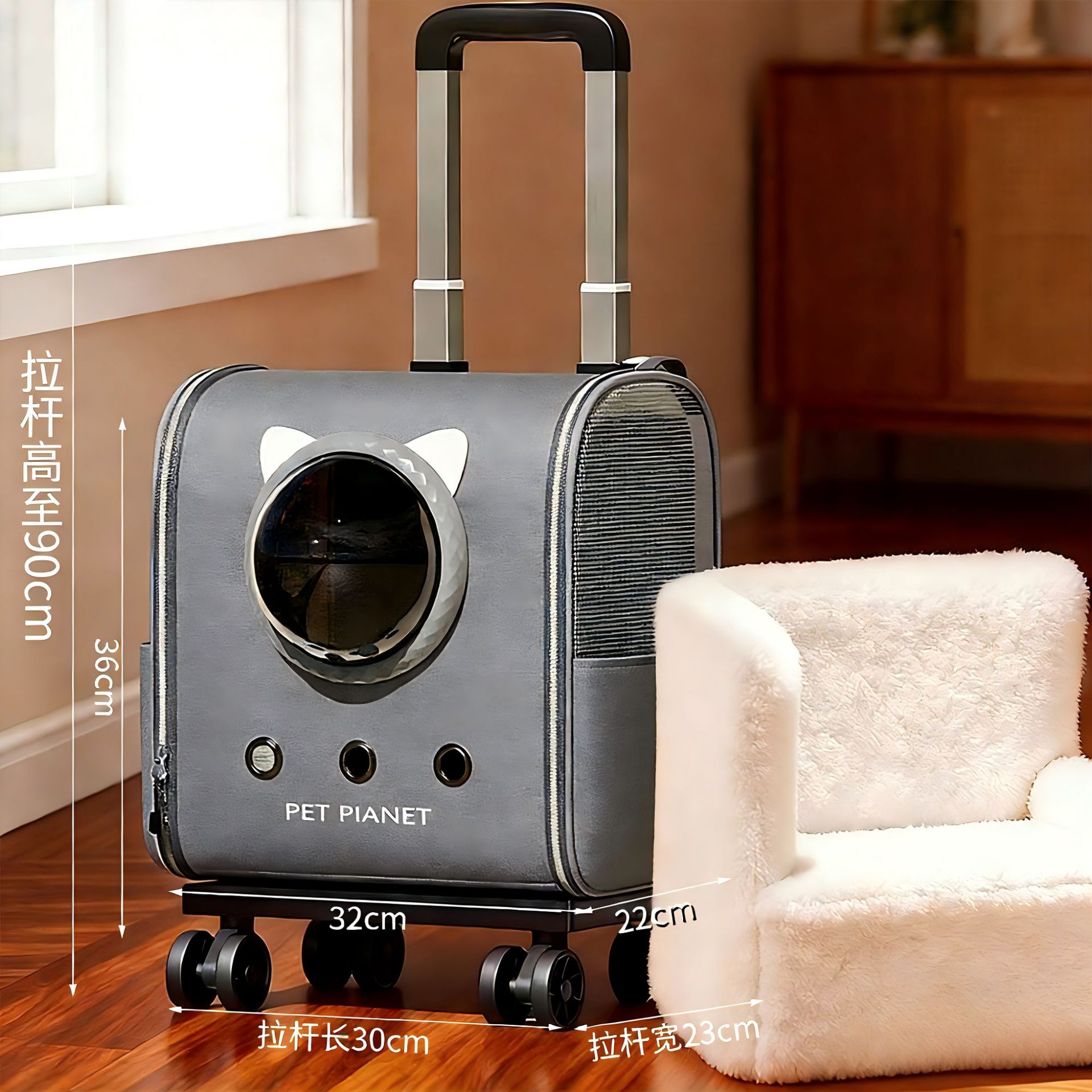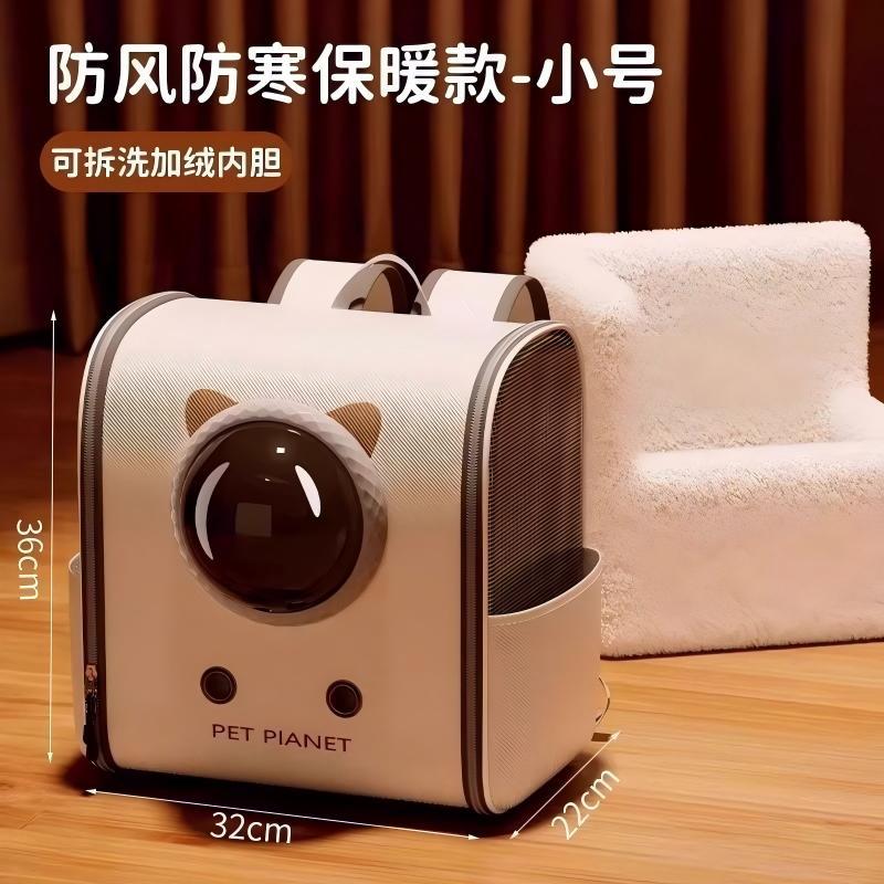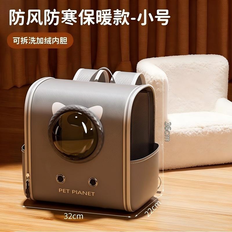 【winter fleece-lined】small size - grey rolling backpack cat carrier 【removable inner liner】