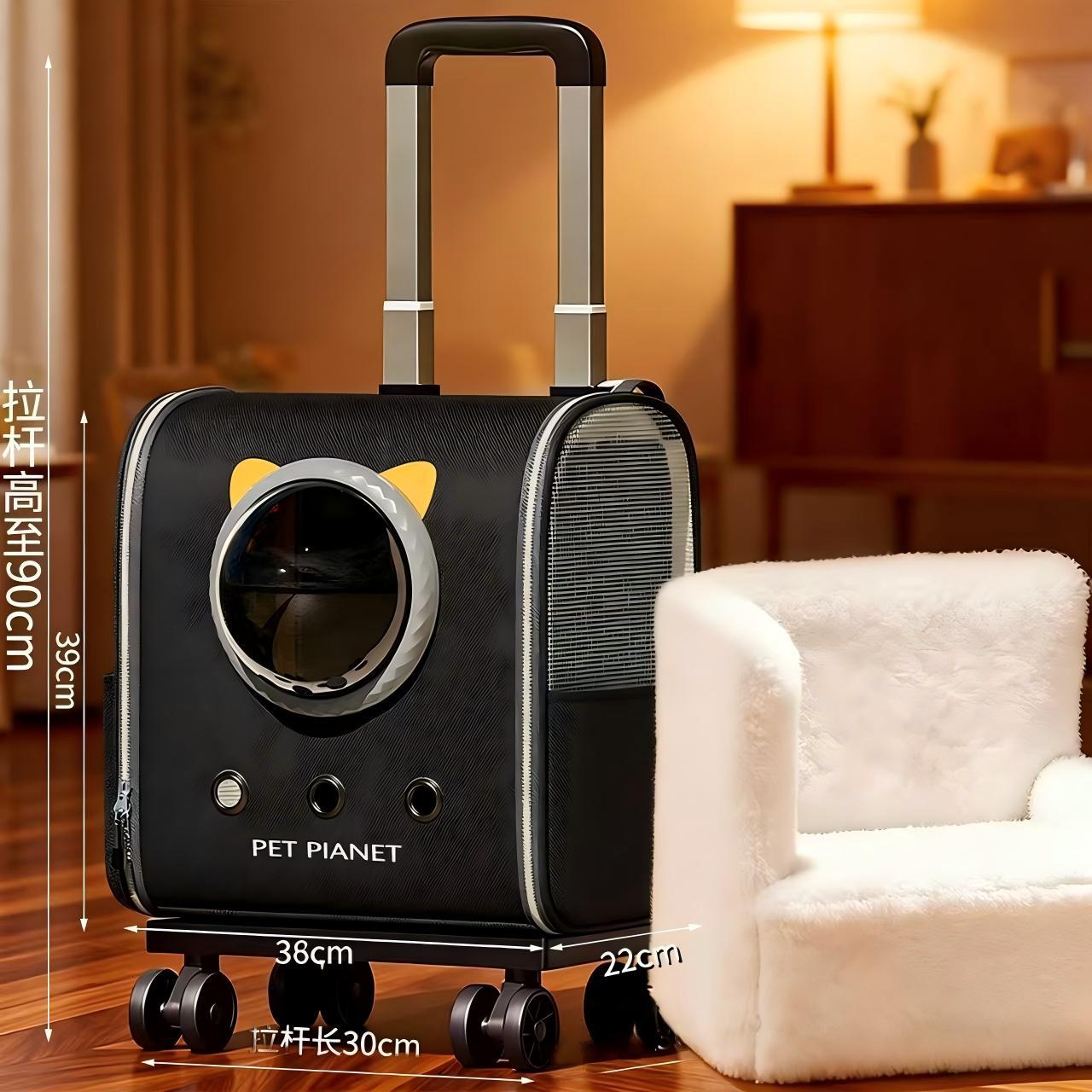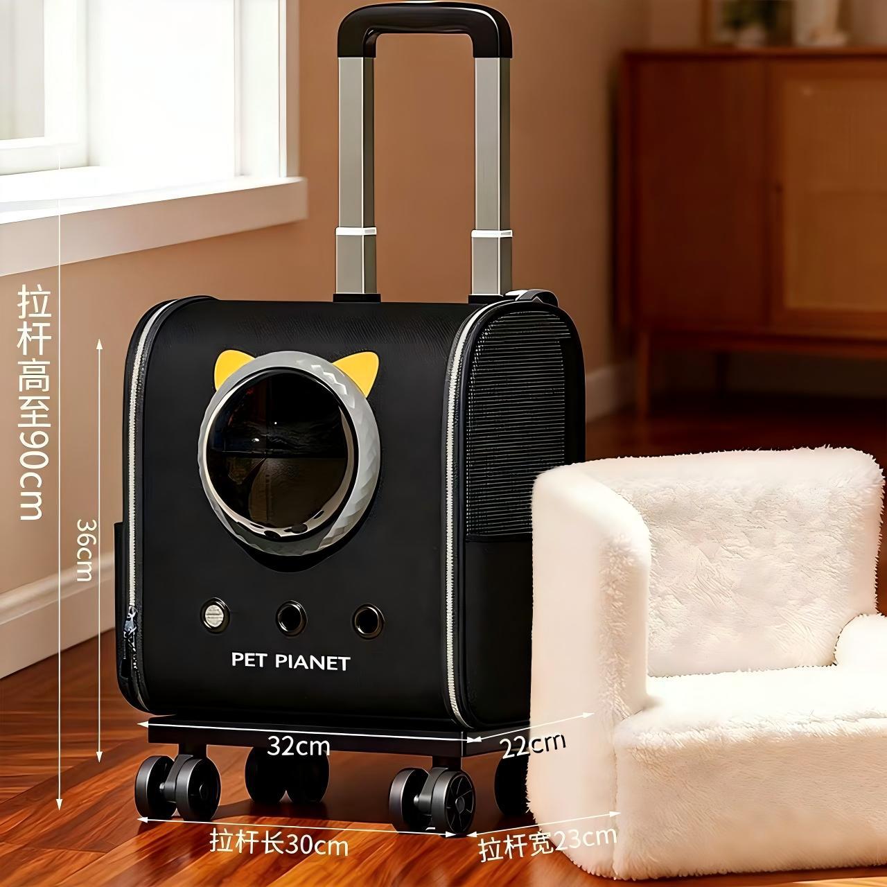 Large size - black rolling cat carrier backpack [all-in-one solution for multiple uses]
