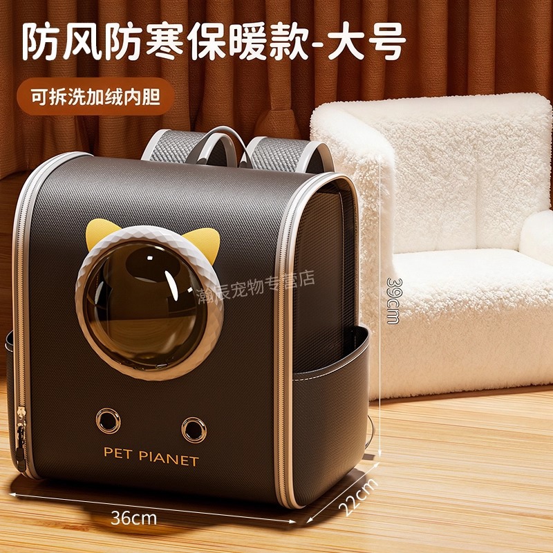 【winter fleece-lined】large size - grey rolling cat carrier backpack 【removable inner liner】