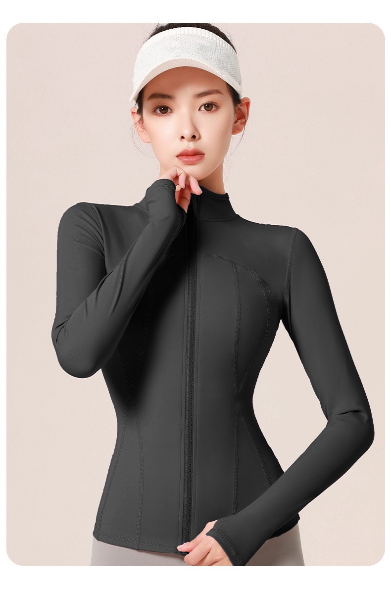 Lulu Spring and Autumn New Women's Yoga Clothes Sports Tight-Fit Slim-Fit Running Fitness Yoga Jacket with Vertical Collar Slim All-Match