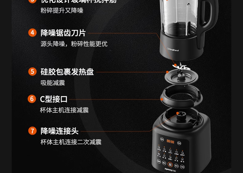 Carefully Selected - Joyoung Blender, Multifunctional Household Blender with Large Capacity, Heating, Low Noise, and Noise Reduction Features, Suitable for Making Soy Milk and Cooking
