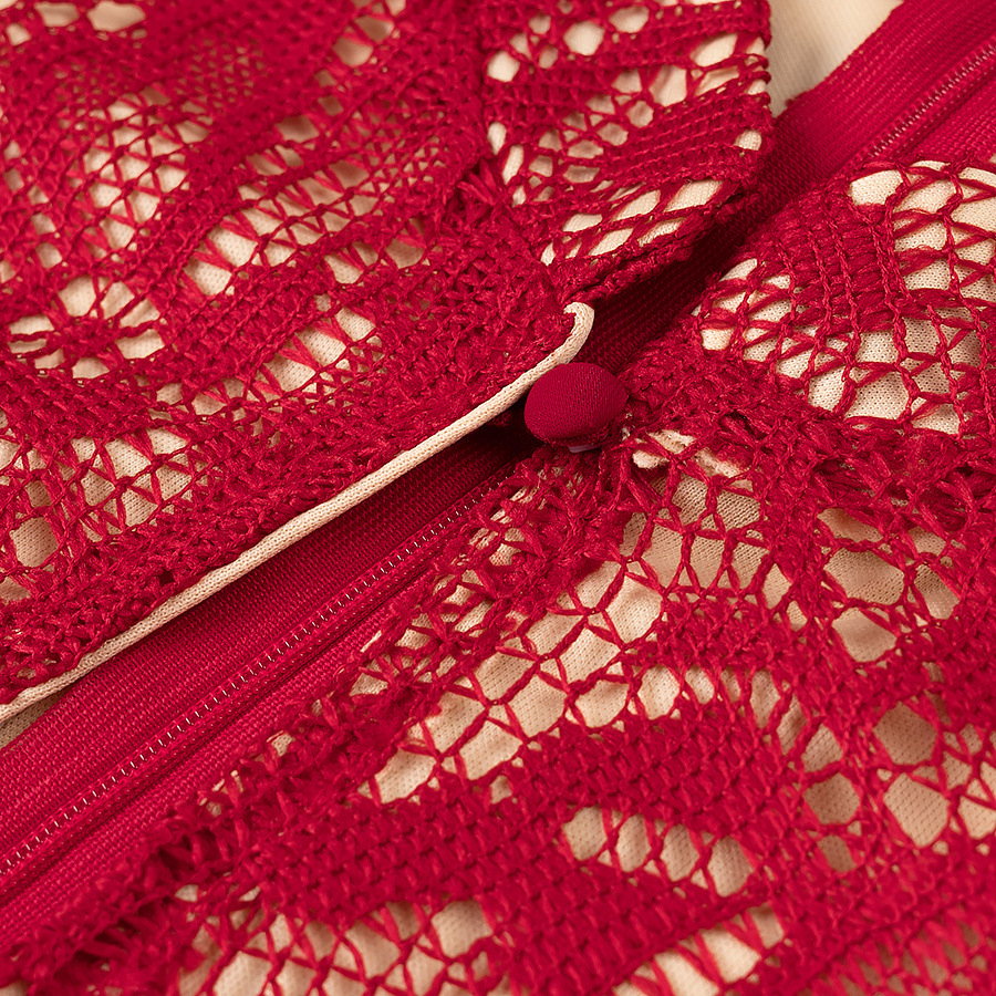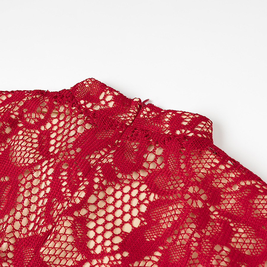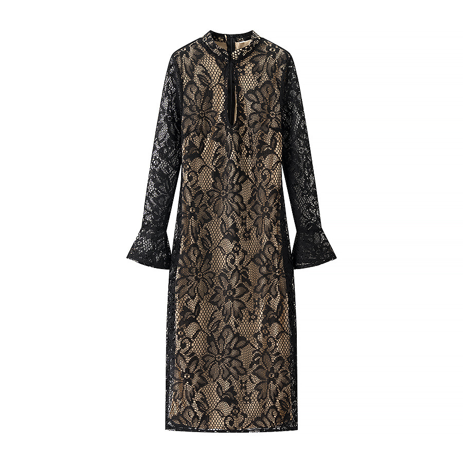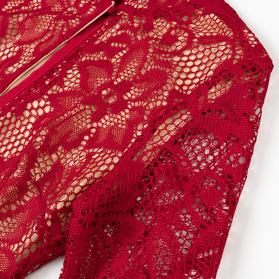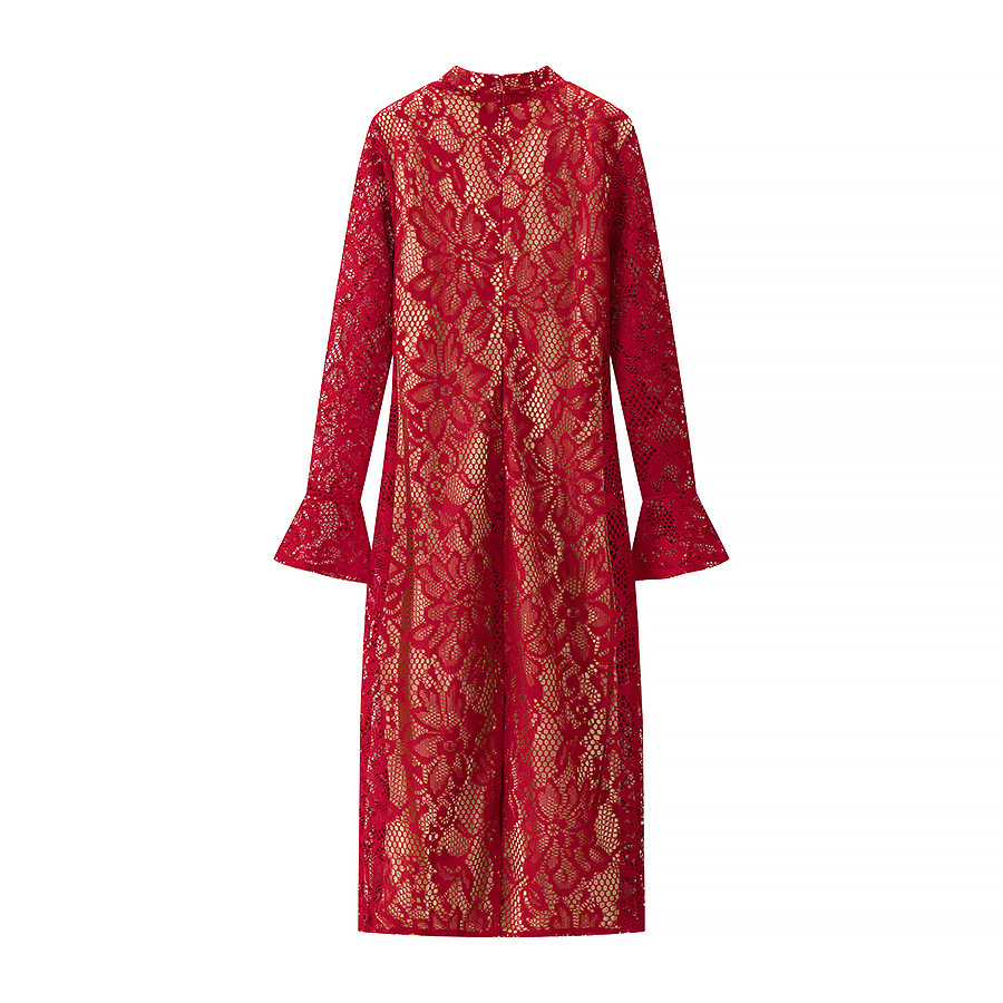 ZA cross-border women's clothing wholesale European and American style sexy low-cut horn long sleeve lace hollow hip slim dress