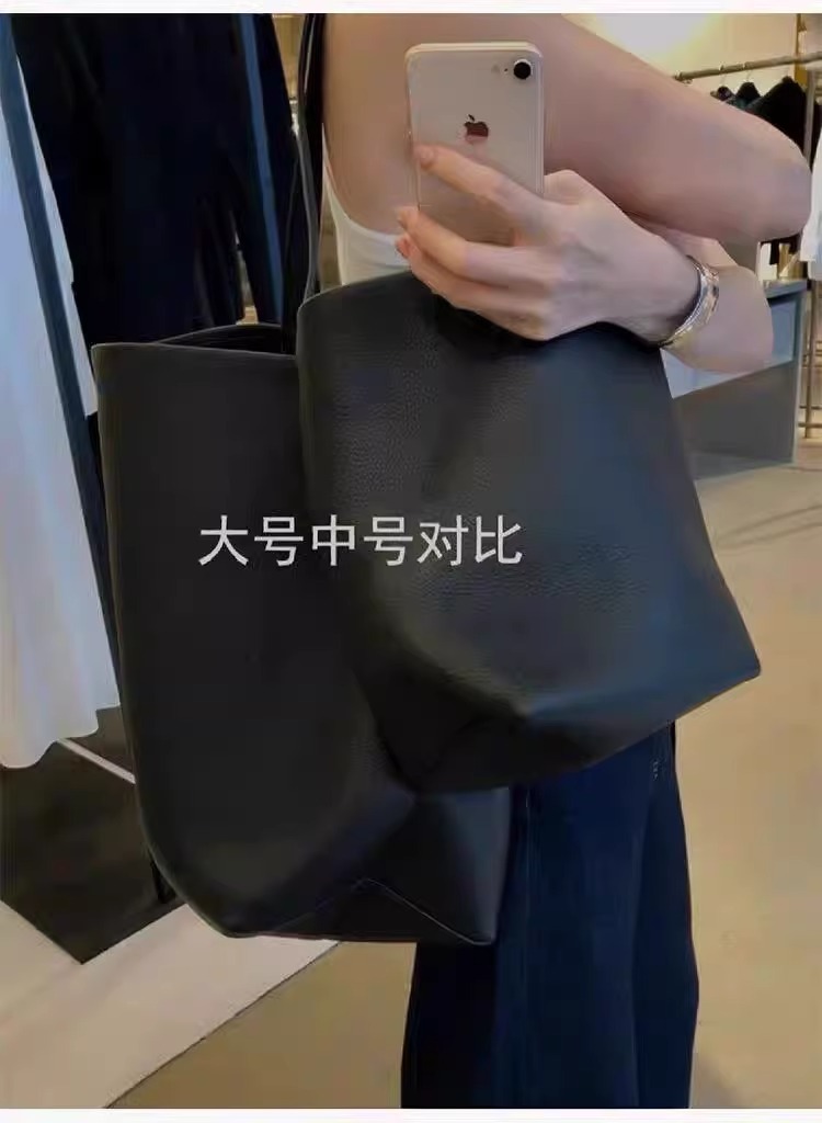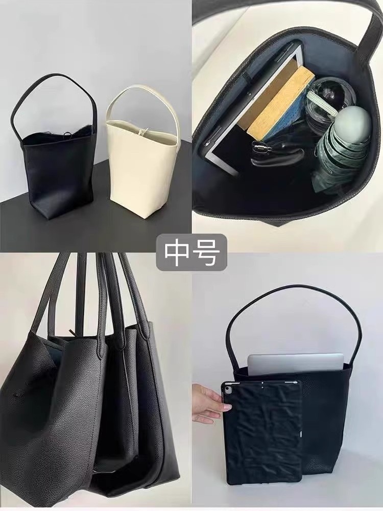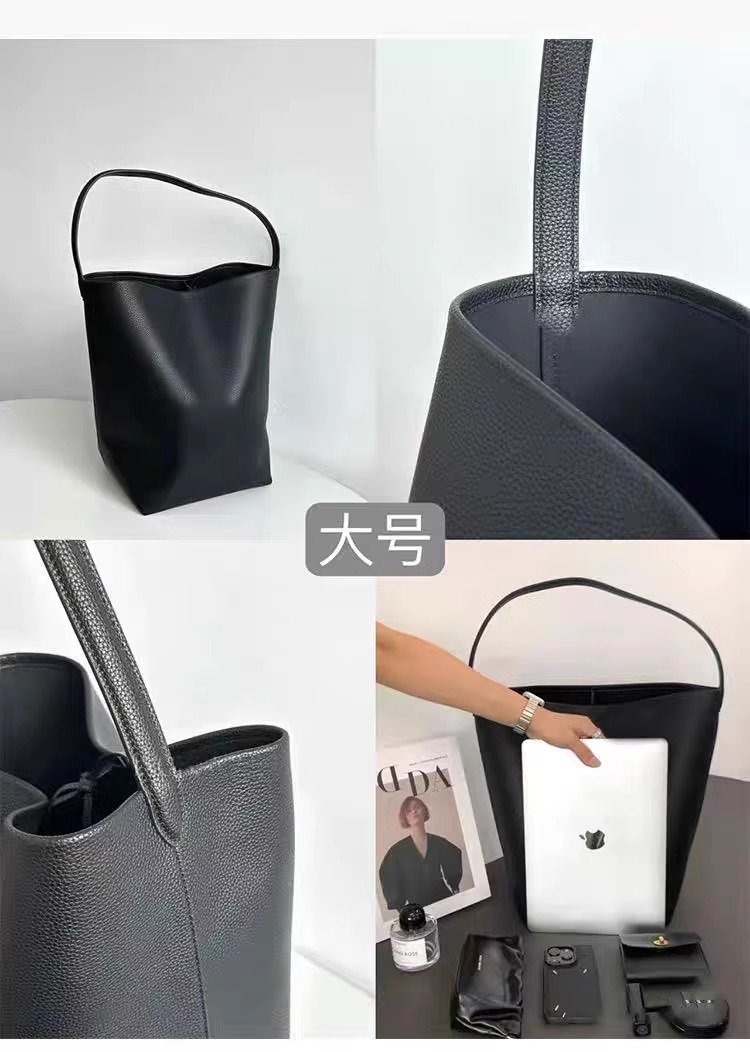 [in stock] THE ROW Bucket Bag Leather Litchi Pattern Large Capacity Shoulder Bag Tote Bag Leather Women's Bag