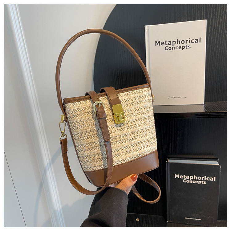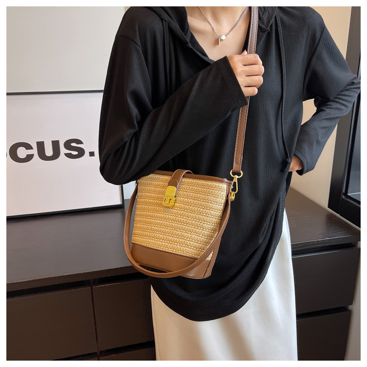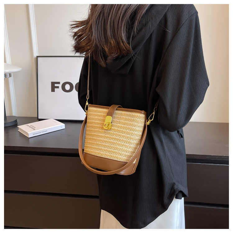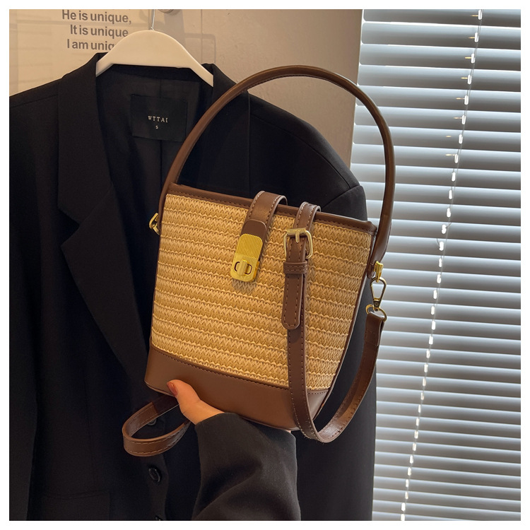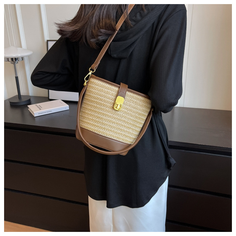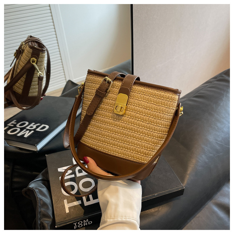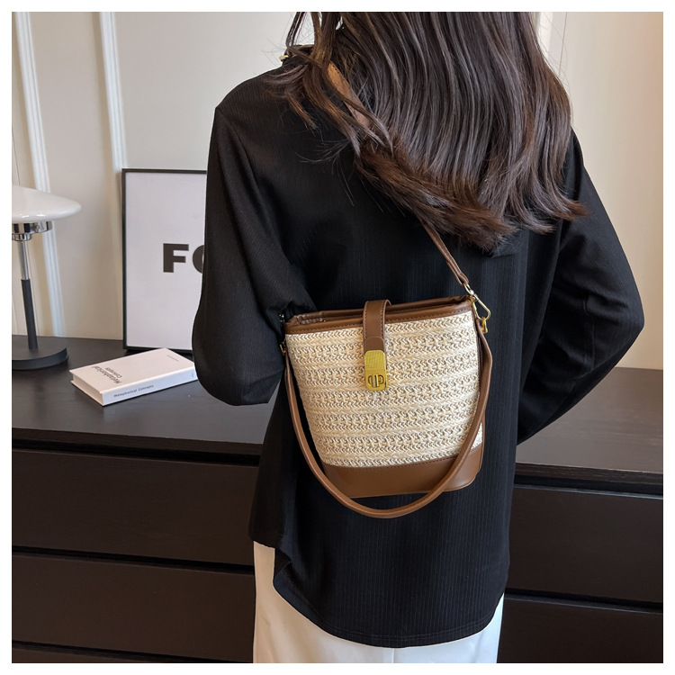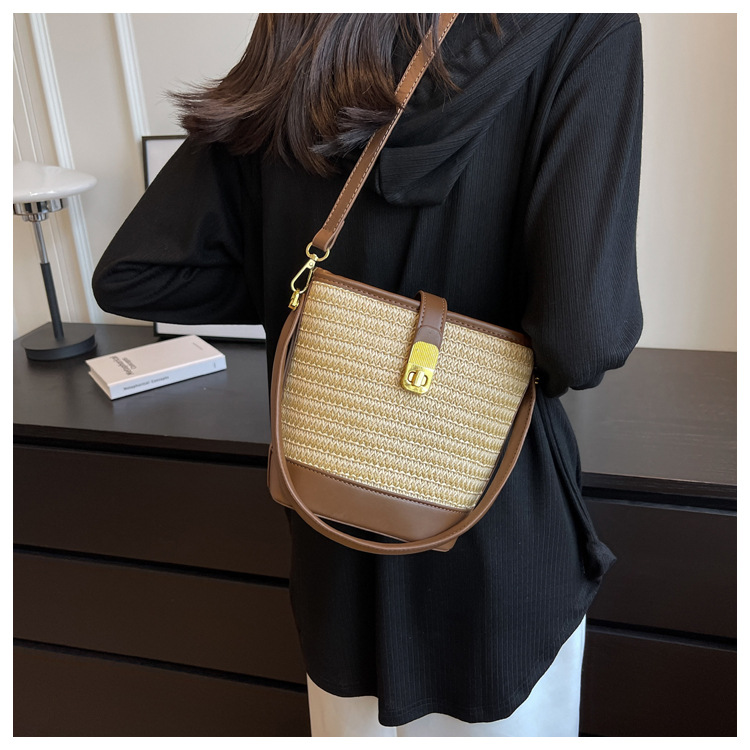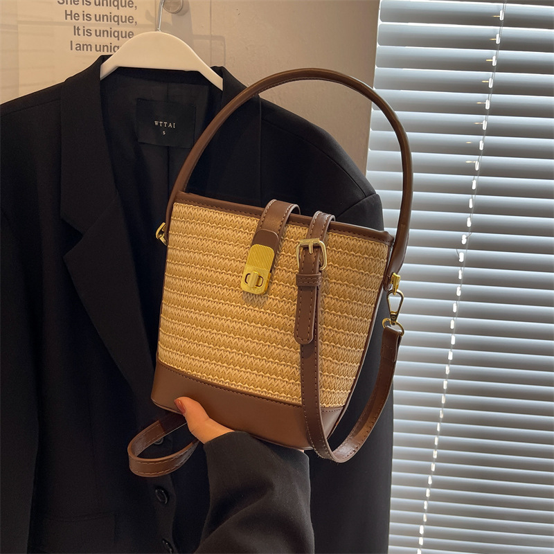 2026 New Handbag Straw Woven Bag Women's Trendy Retro Bucket Bag Versatile Shoulder Crossbody Bag Woven Bag Wholesale