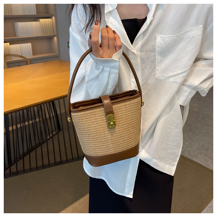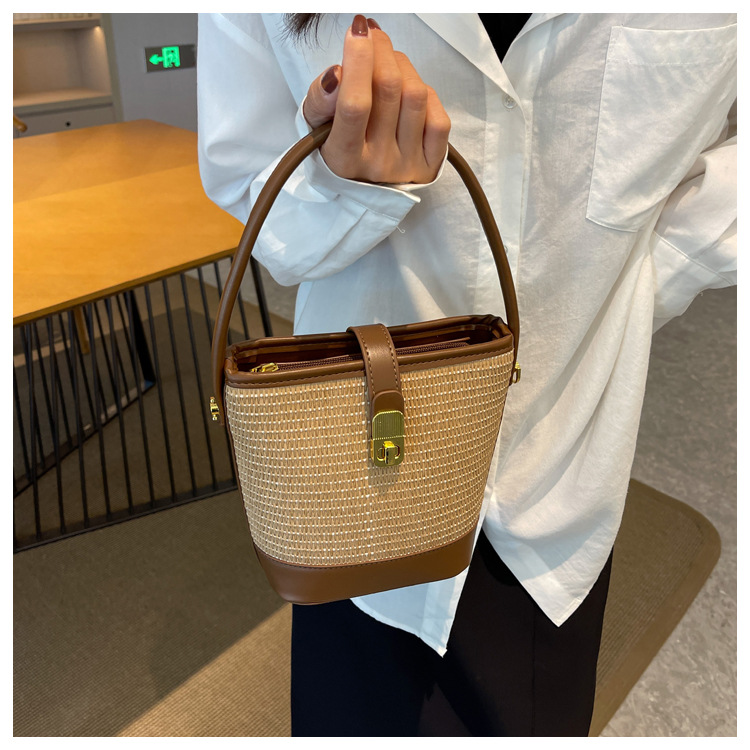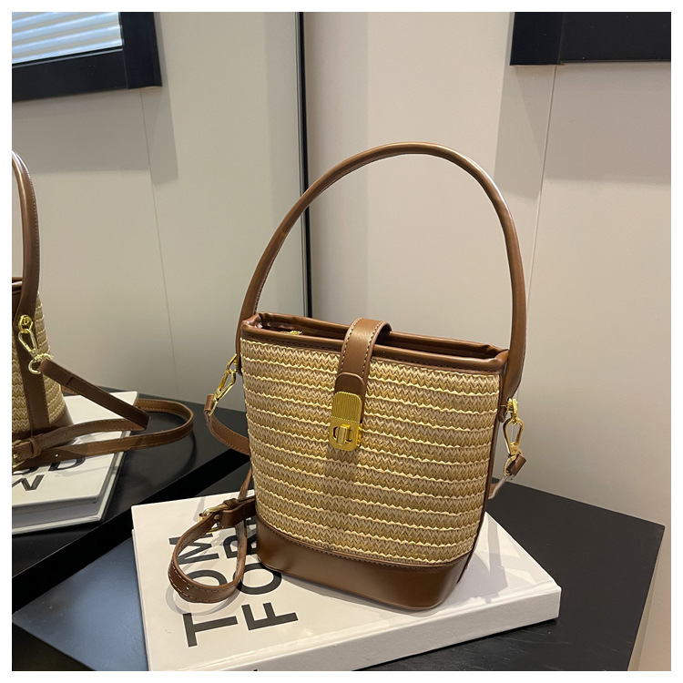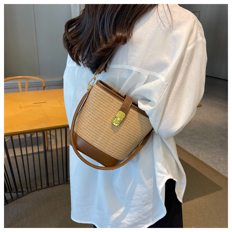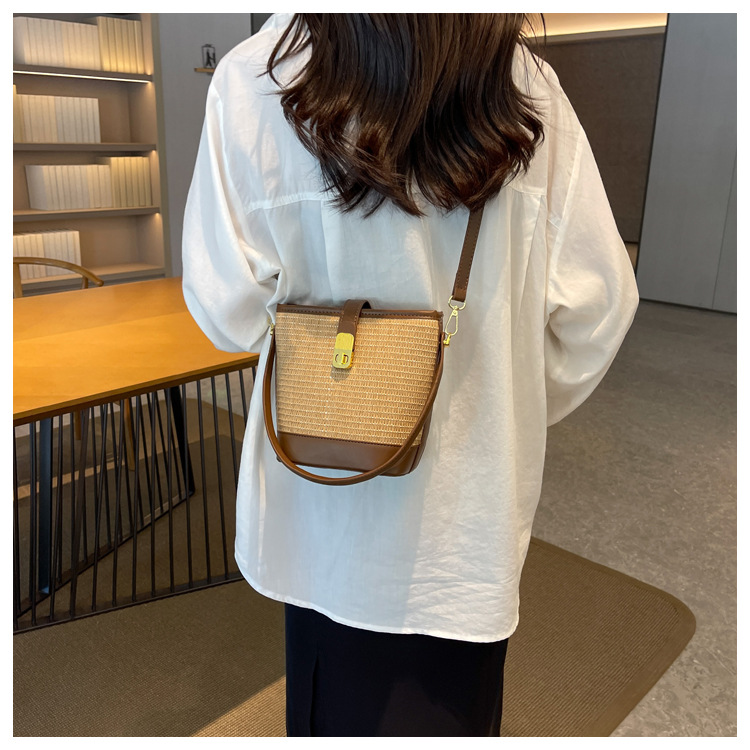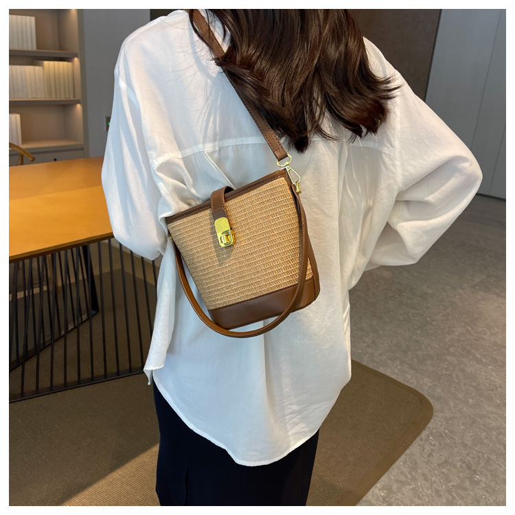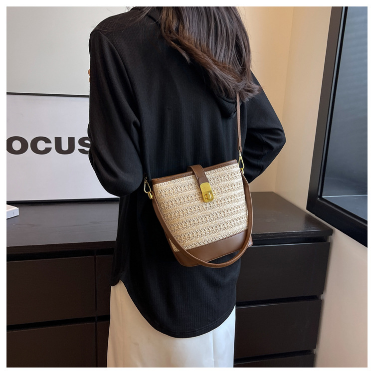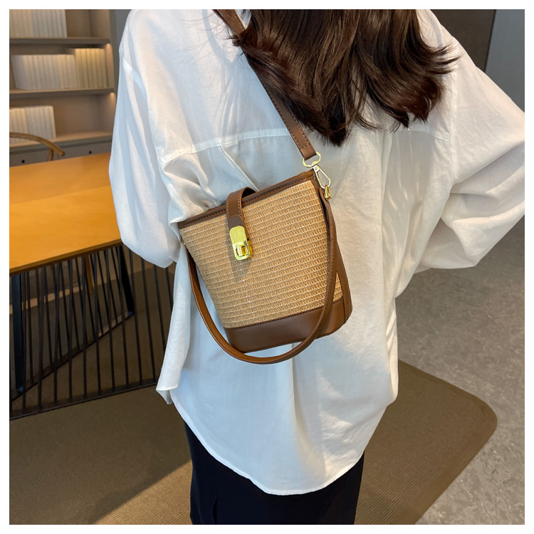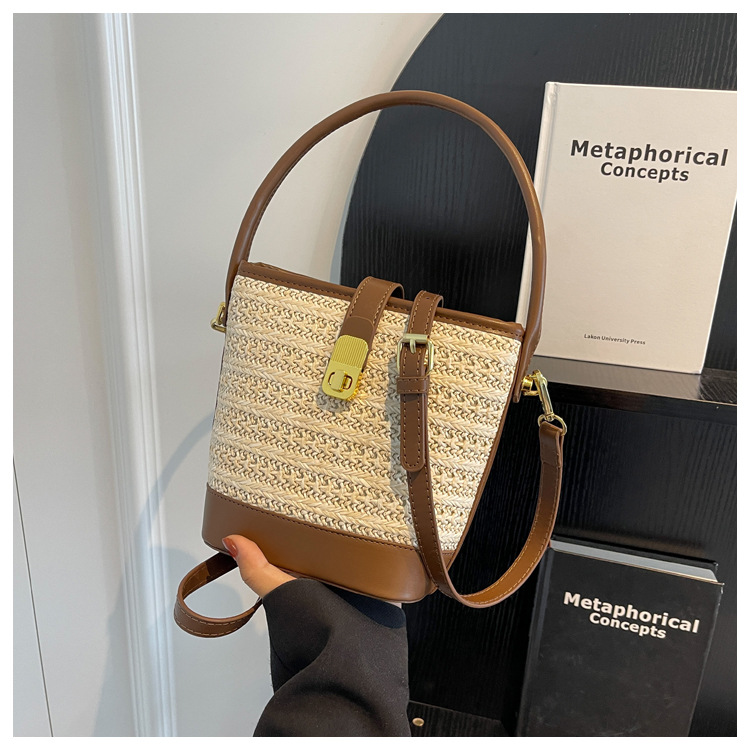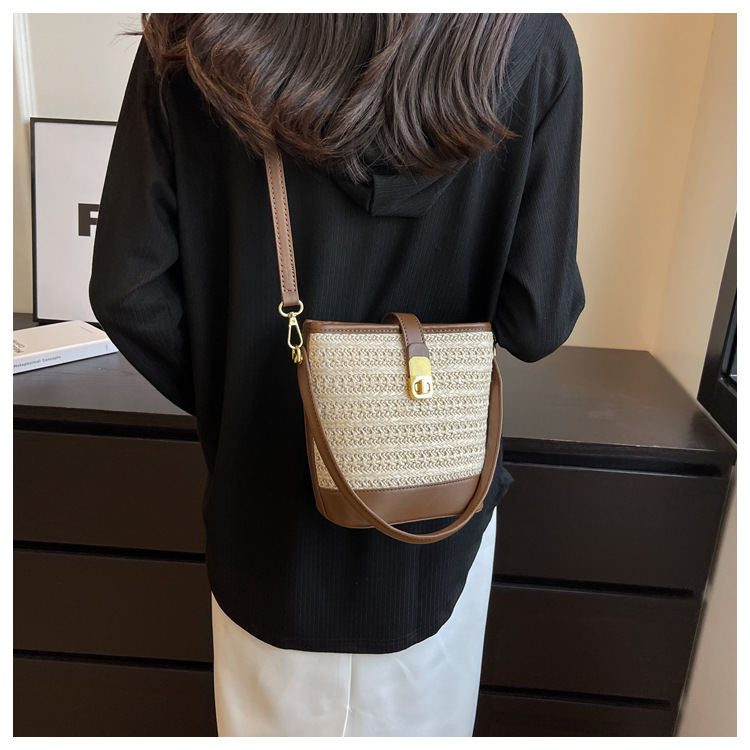 2026 New Handbag Straw Woven Bag Women's Trendy Retro Bucket Bag Versatile Shoulder Crossbody Bag Woven Bag Wholesale