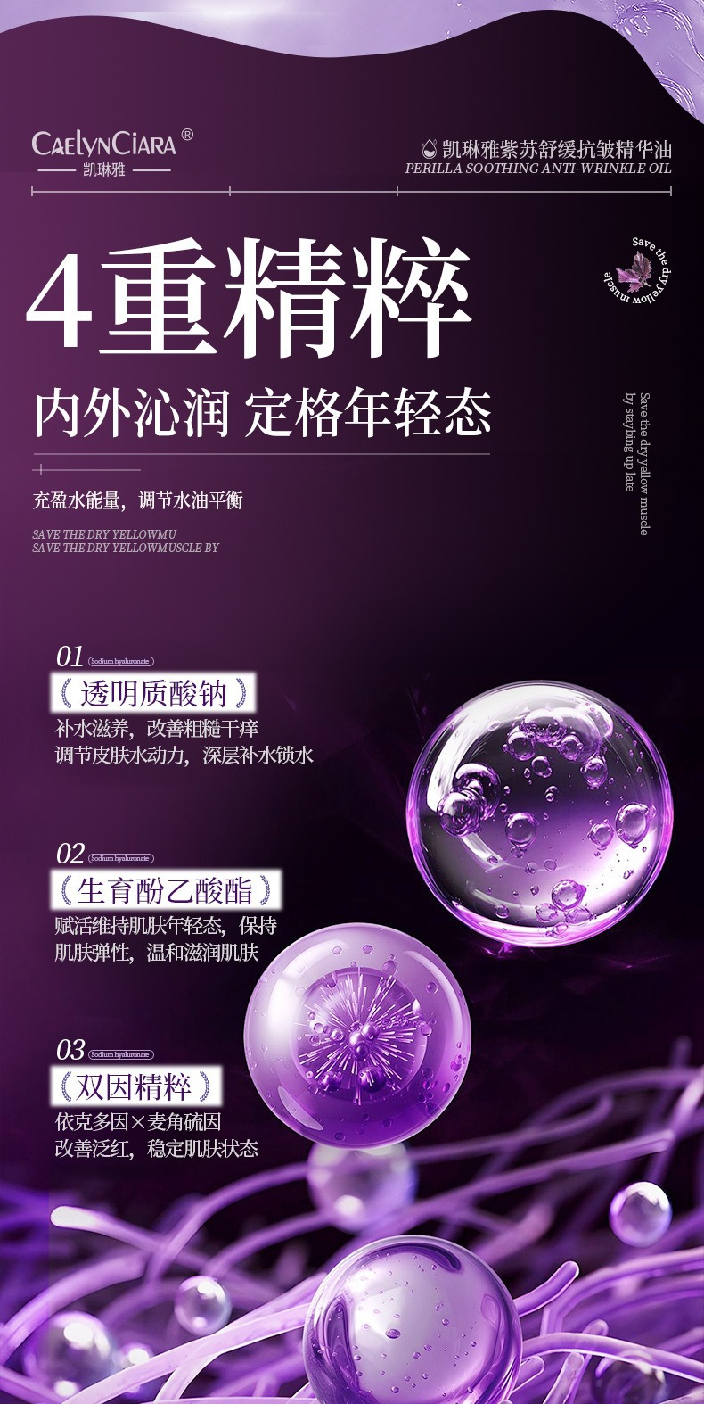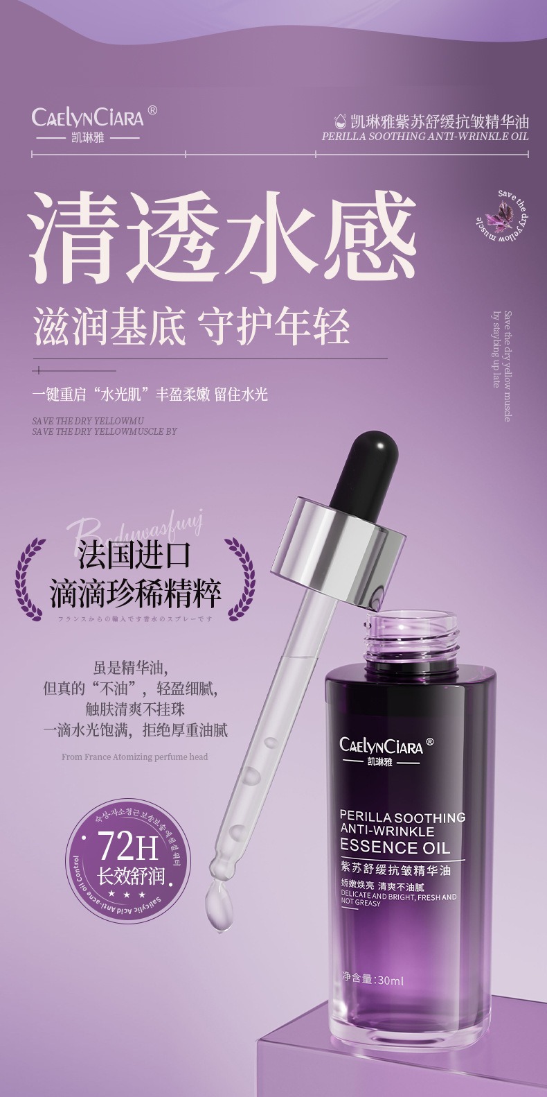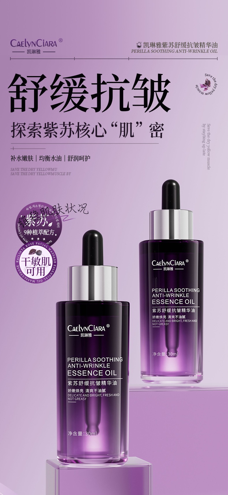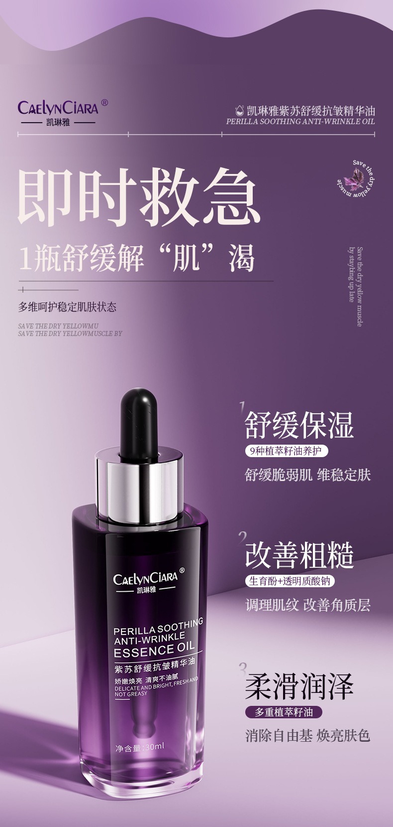 Kailinya improves skin dullness, maintenance and moisturizing improves skin roughness, perilla soothing anti-wrinkle essence oil
