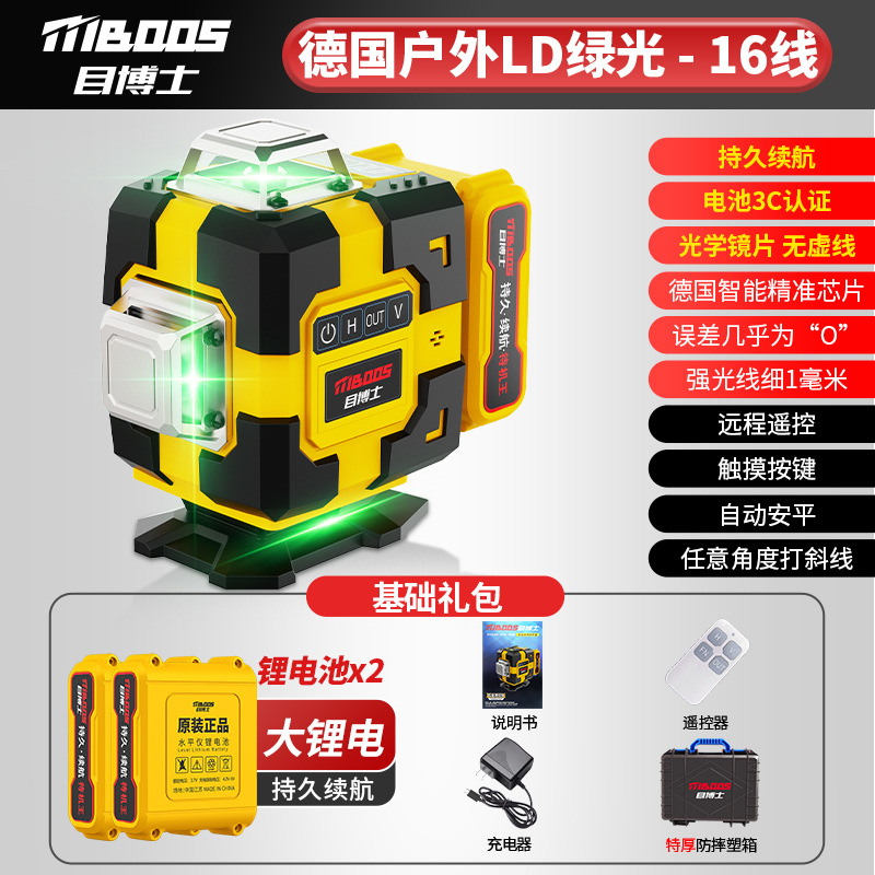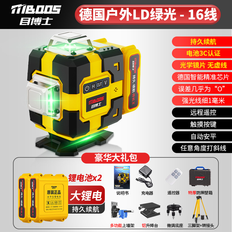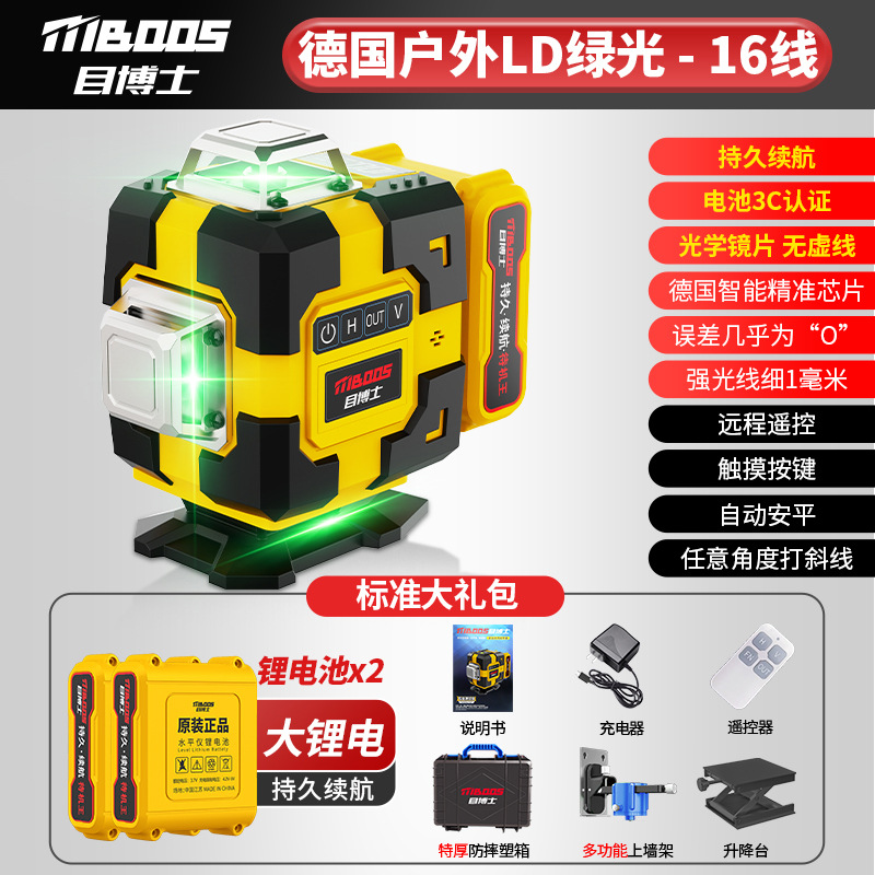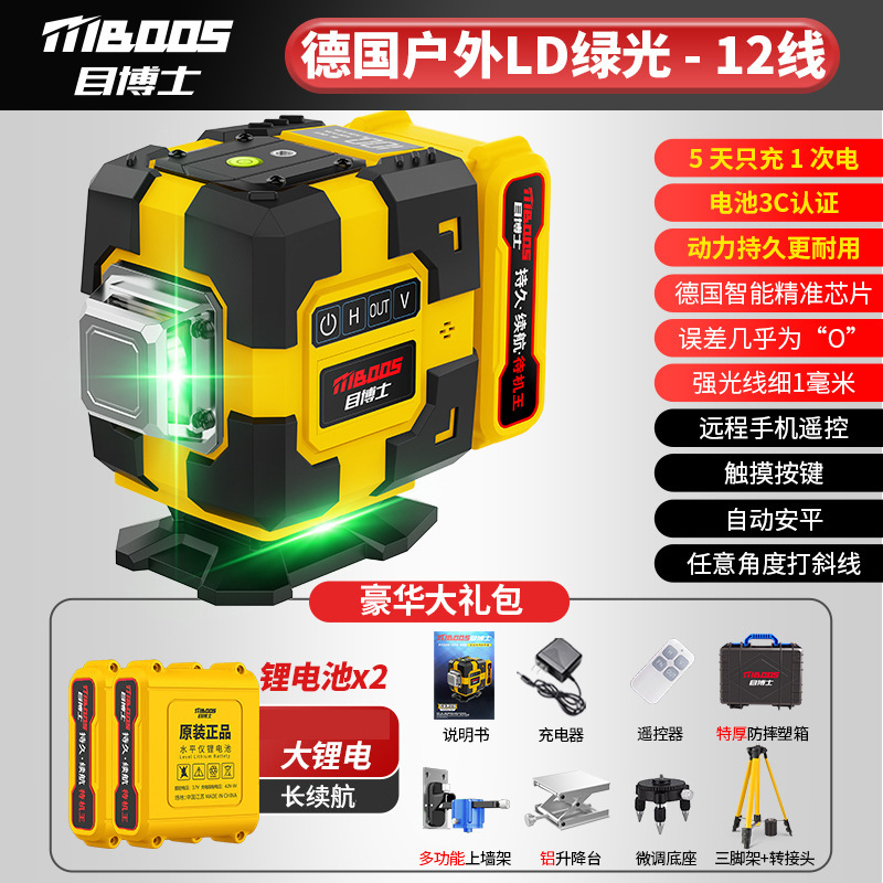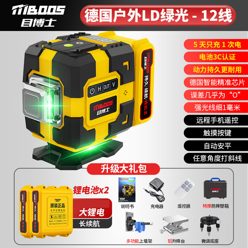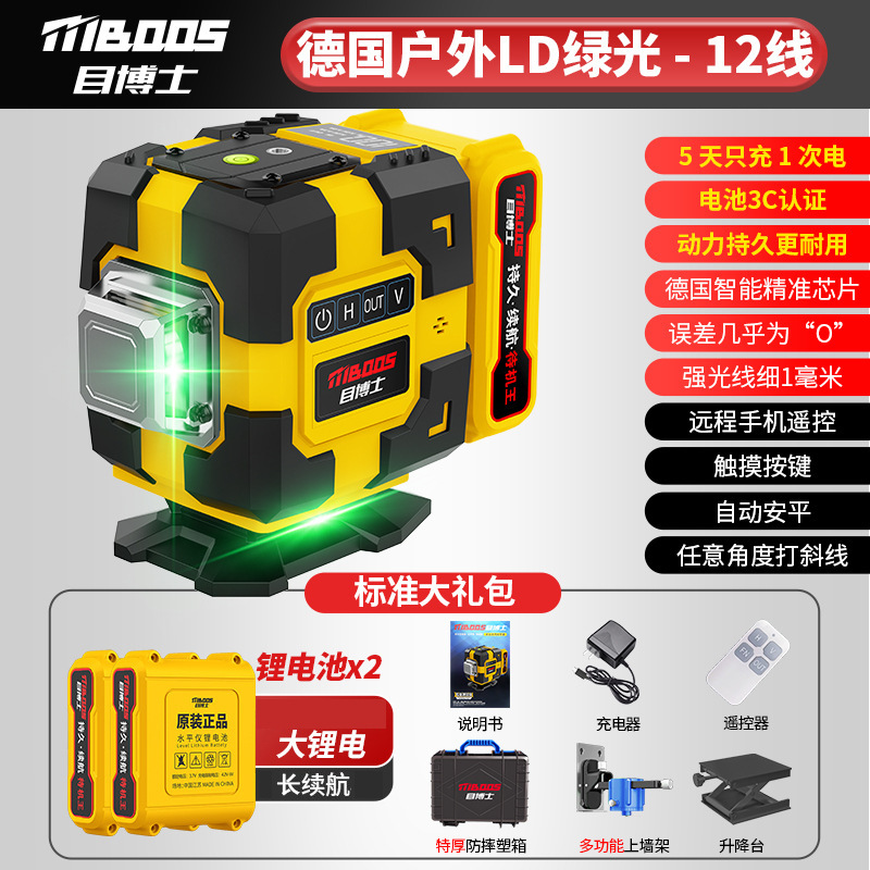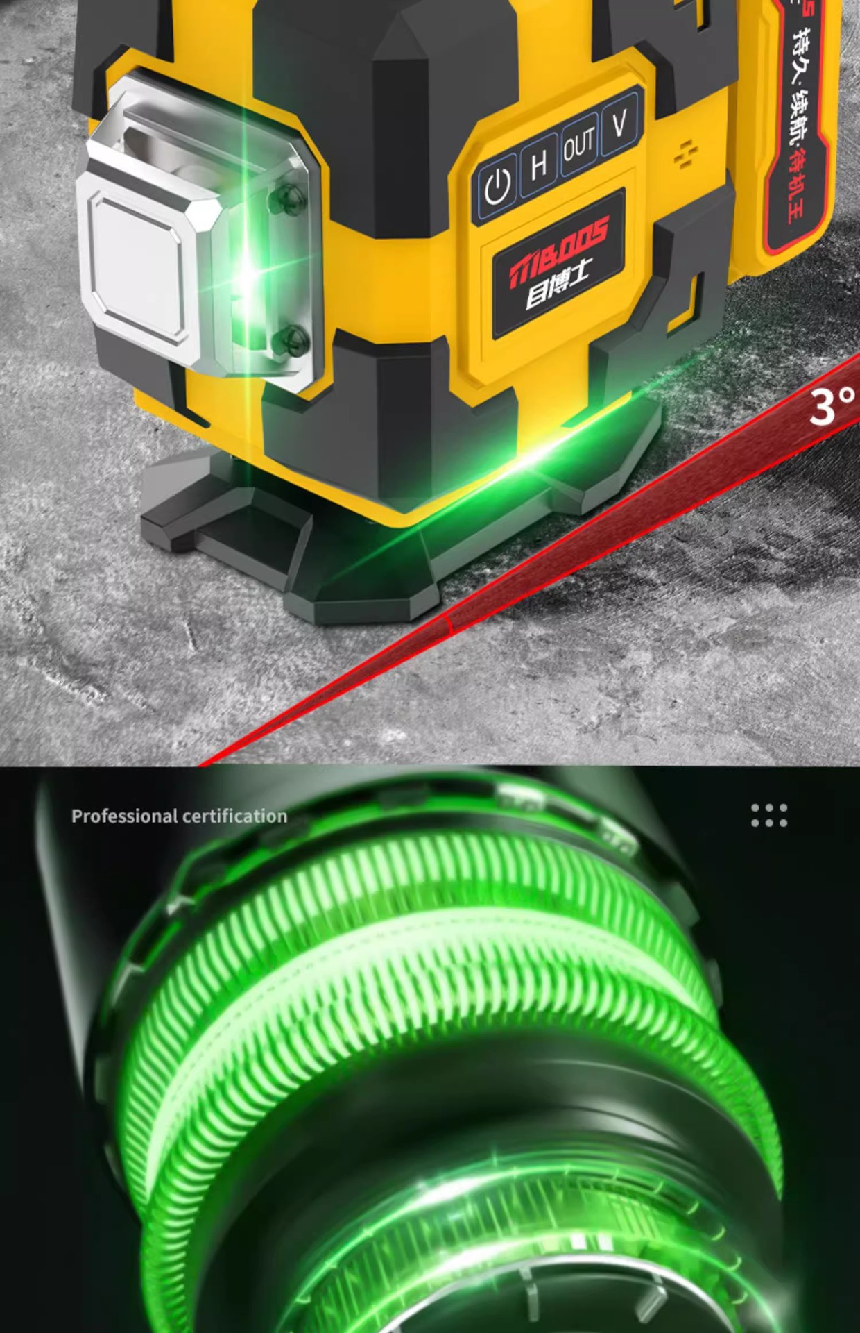 High-precision green laser level, automatic leveling, suitable for all construction scenarios such as bricklaying, carpentry ceiling, water and electricity positioning, etc.