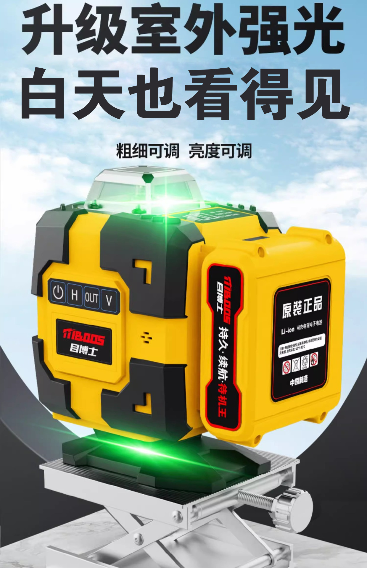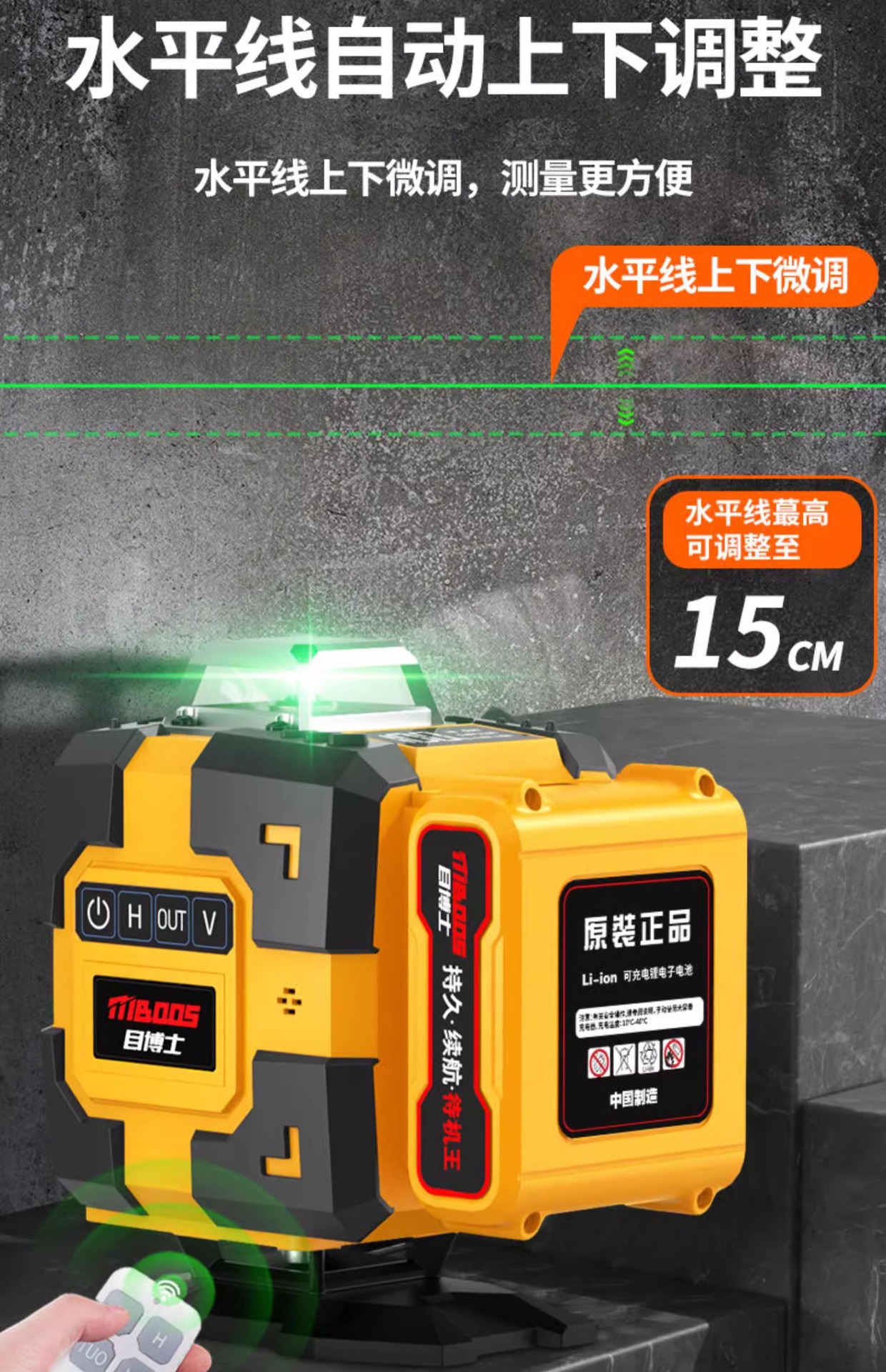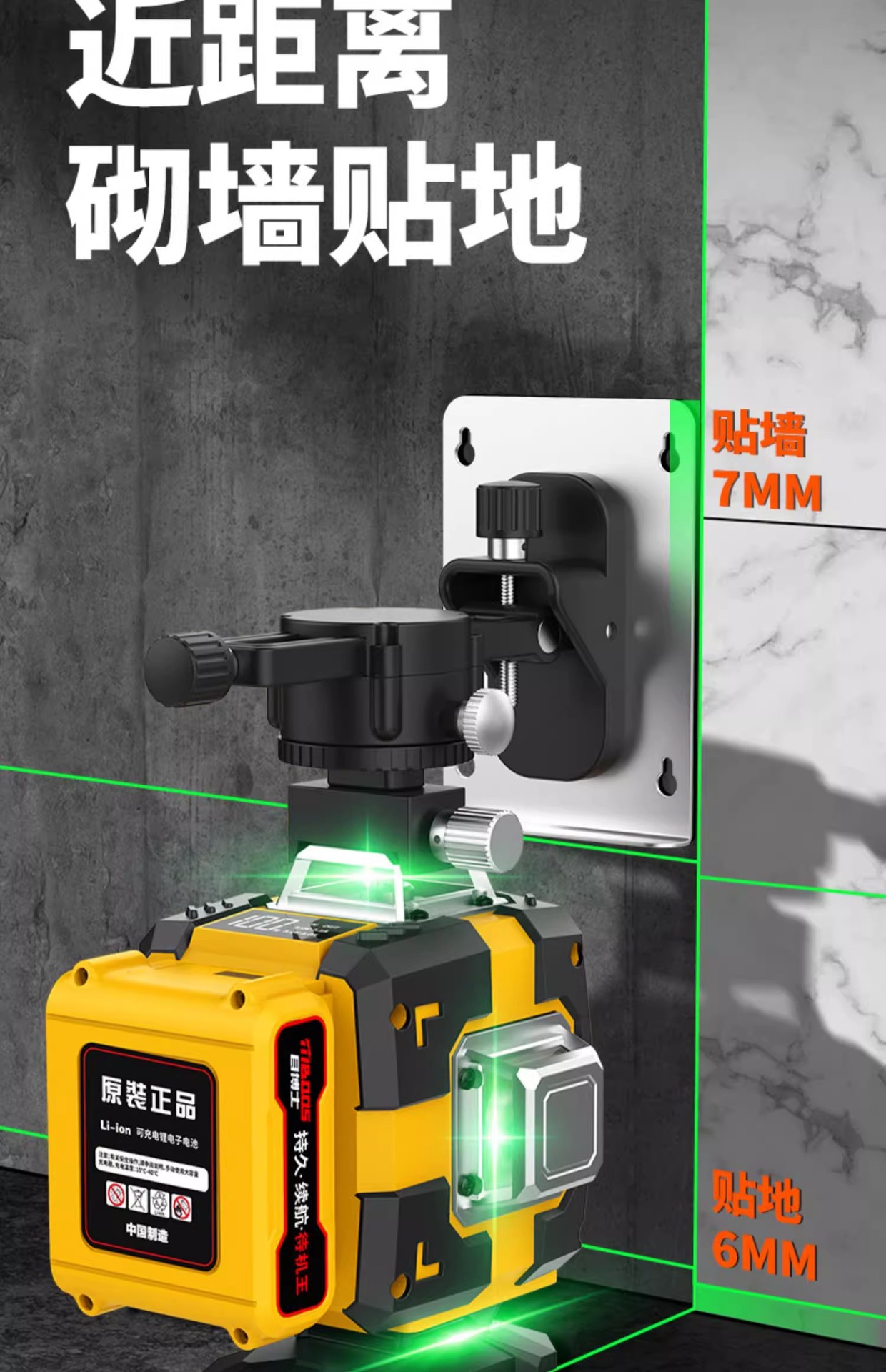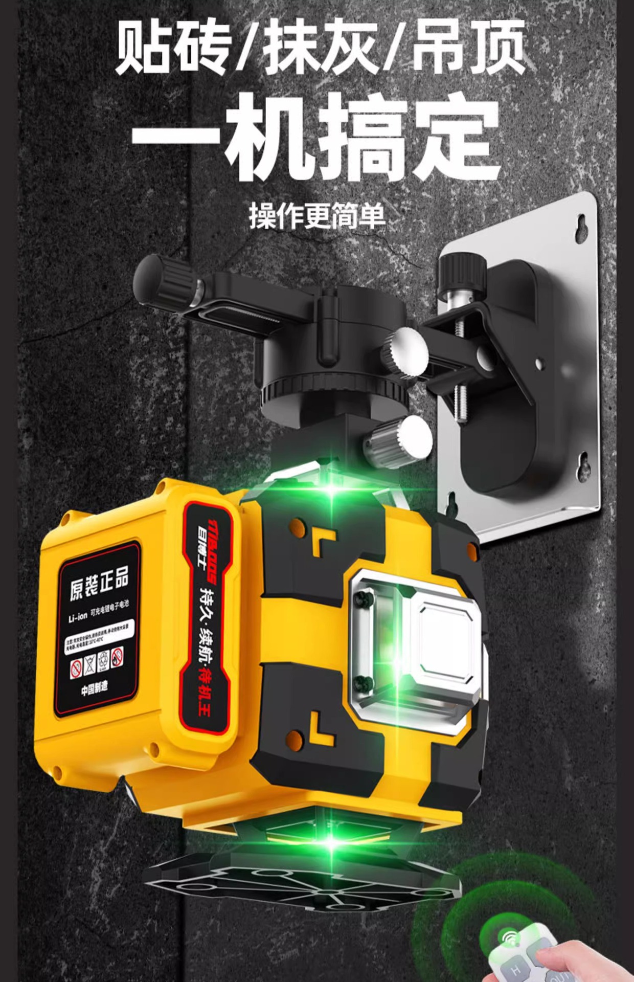 高精度绿光激光水平仪,自动安平,适用于瓦工贴砖、木工吊顶、水电定位等全场景施工。
