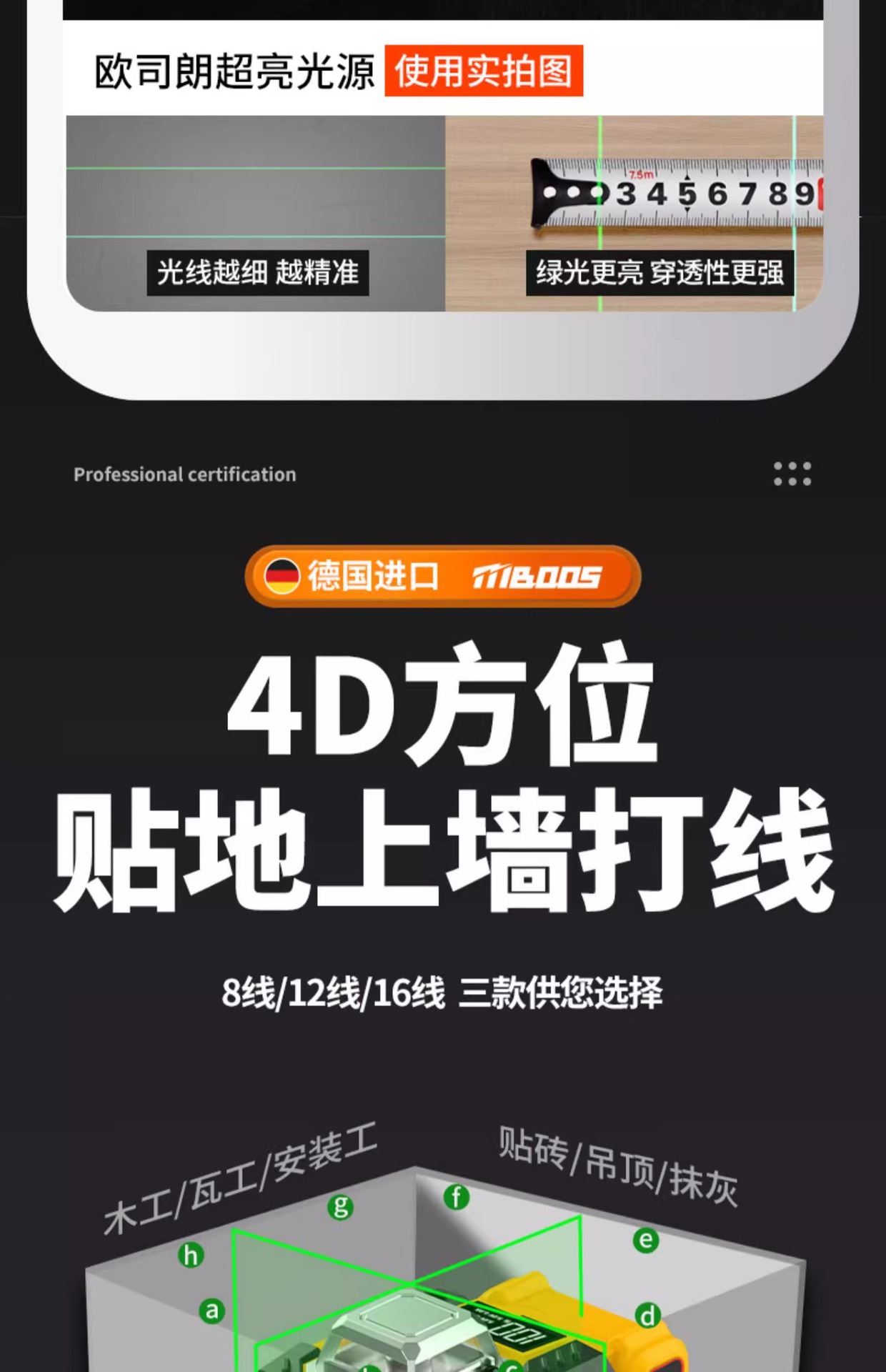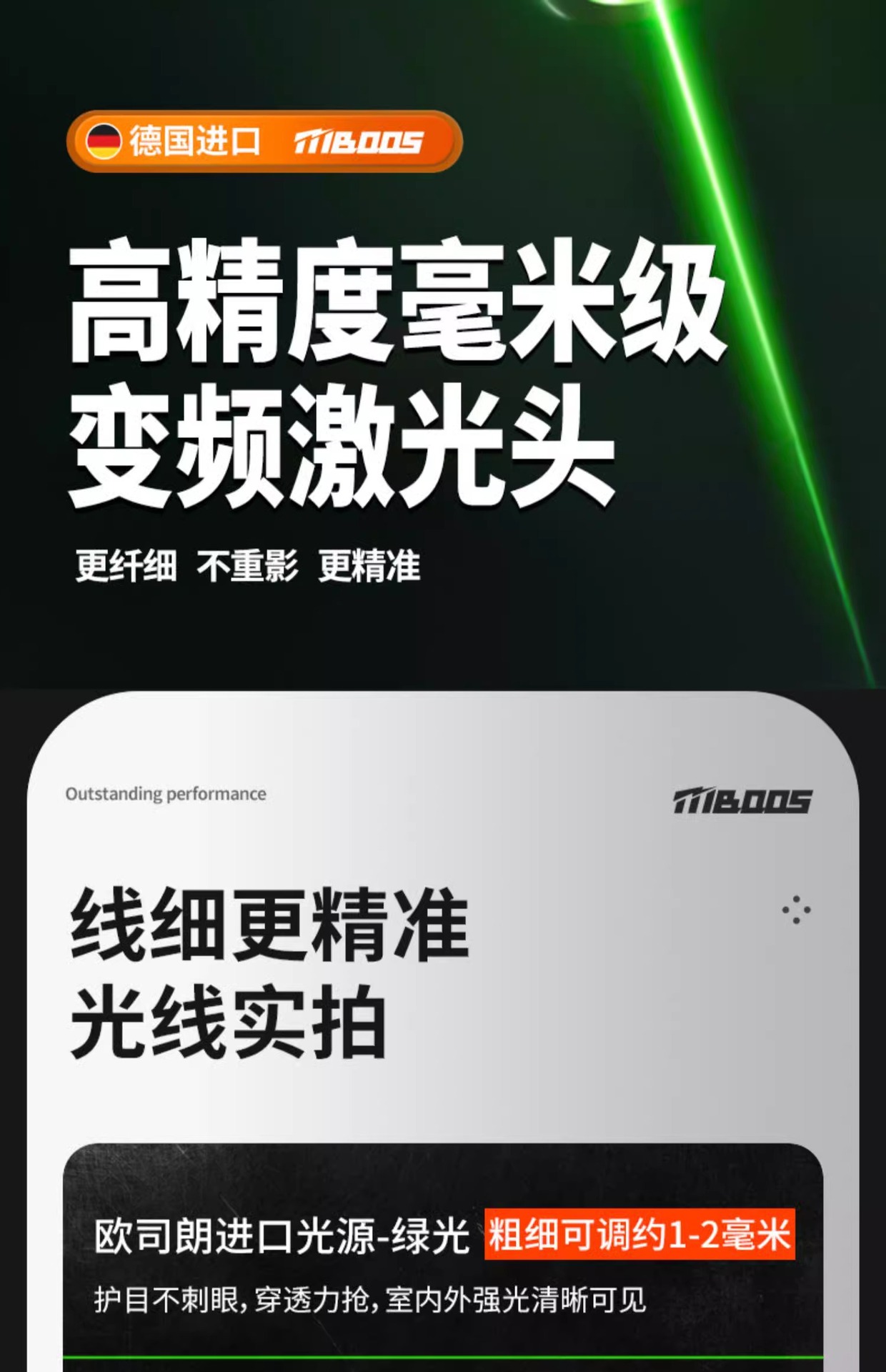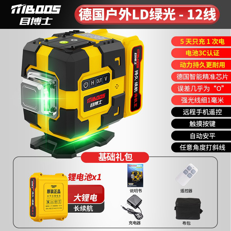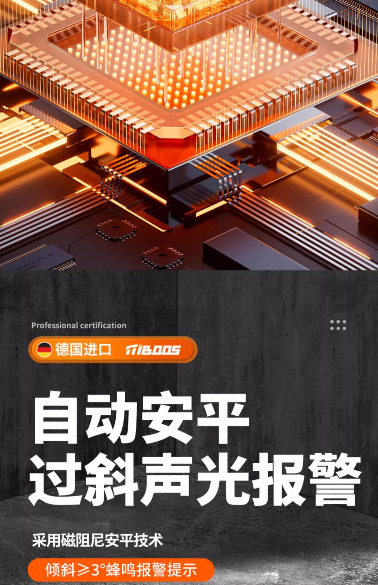 高精度绿光激光水平仪,自动安平,适用于瓦工贴砖、木工吊顶、水电定位等全场景施工。