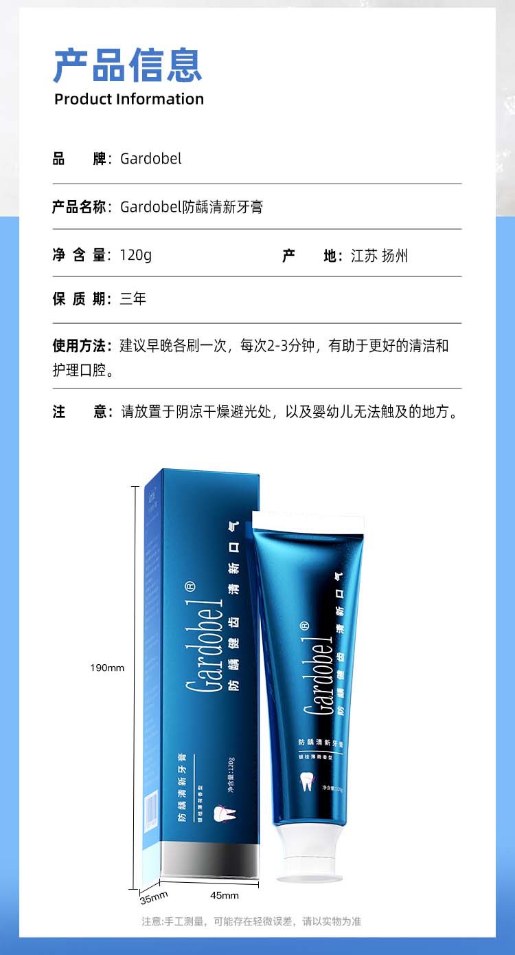 Gardobel anti-caries and anti-cavity toothpaste 120g silver-scented clean oral teeth toothpaste factory wholesale