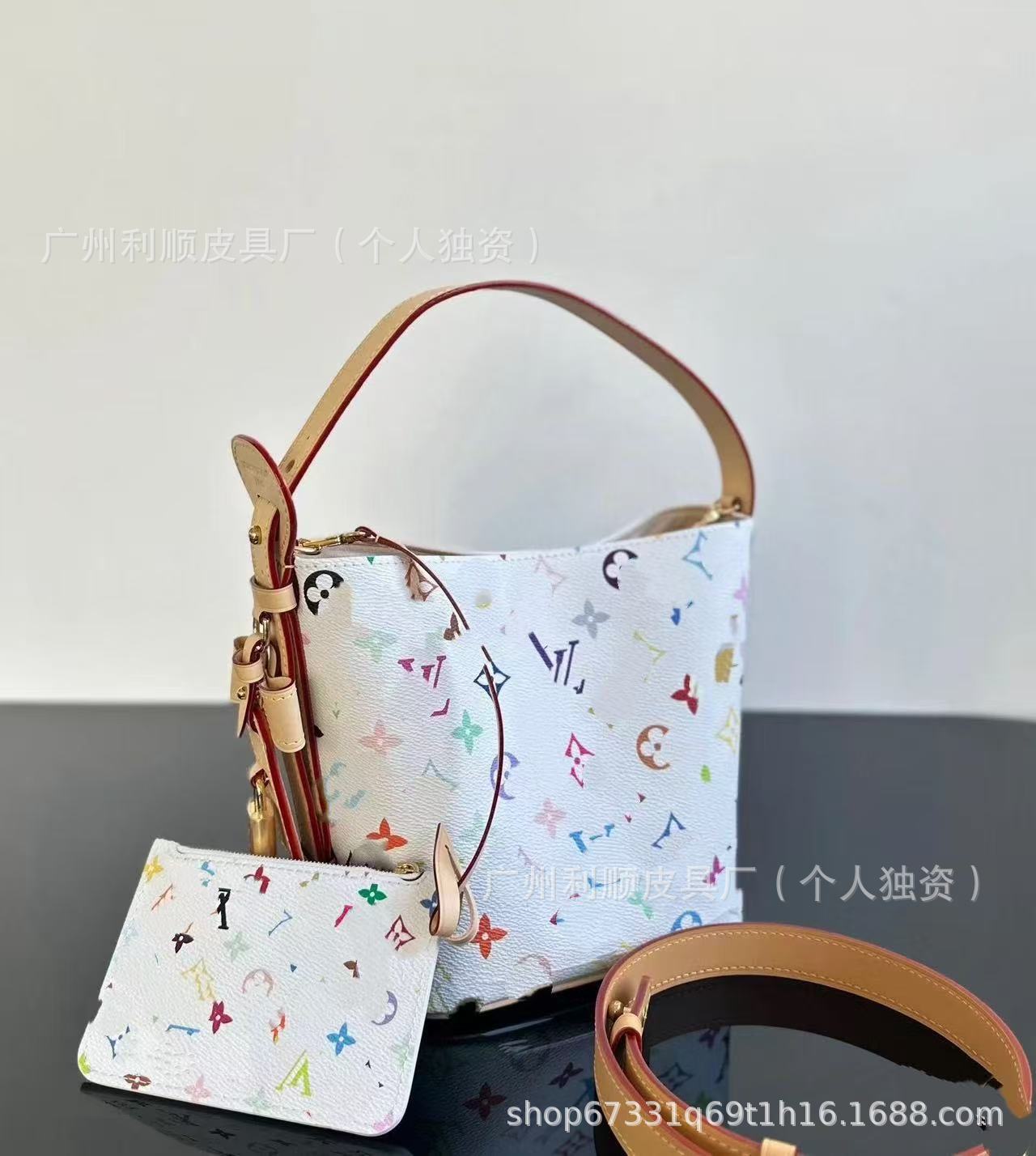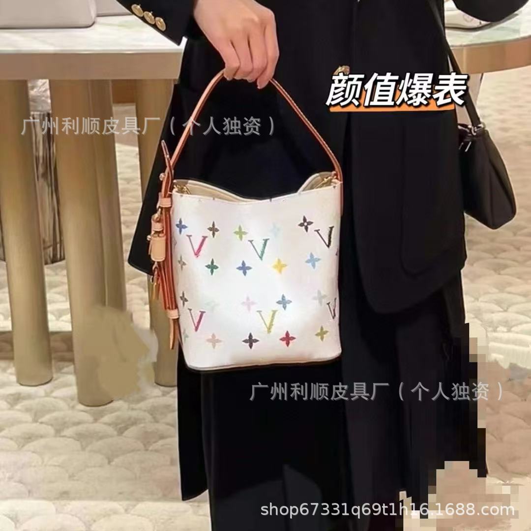 Guangzhou Foreign Trade Direct Supply White Tri-color Bucket Bag Murakami Long all inbb Series Old Flower Tote Vegetable Basket Women's Bag