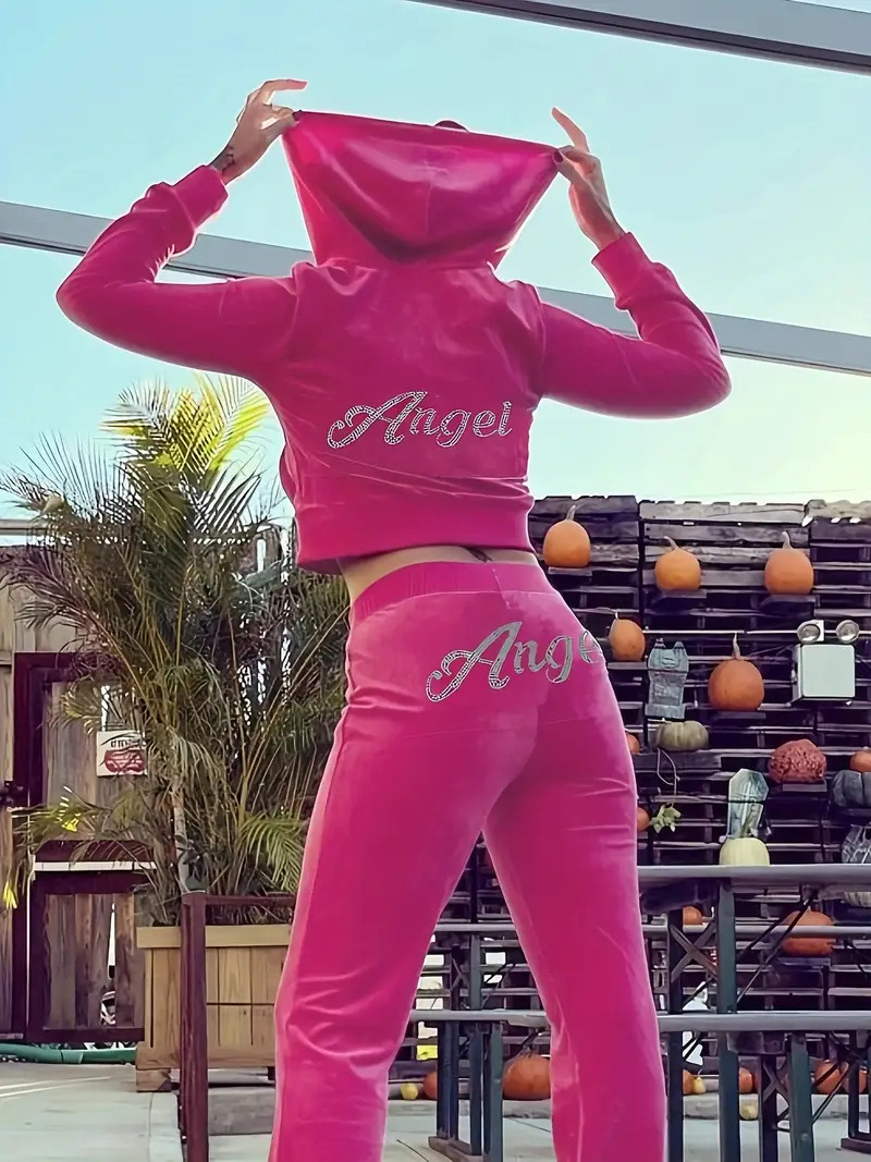 European and American New Aliexpress Women's Korean Velvet Sweatshirt Two-Piece Set for Women Ready-Made Sexy Long-Sleeved Suit