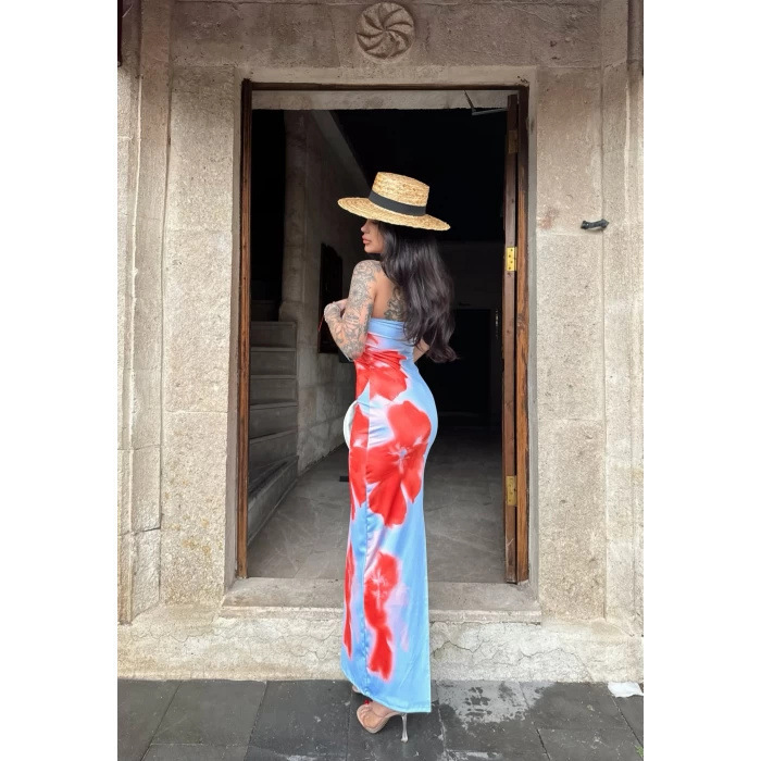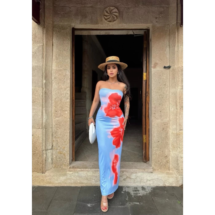Tume Hot-Selling Items in Stock Southeast Asian and European and American Women's Clothing Fashionable Sexy Slim-Fitting Hip-Hugging Printed Dress