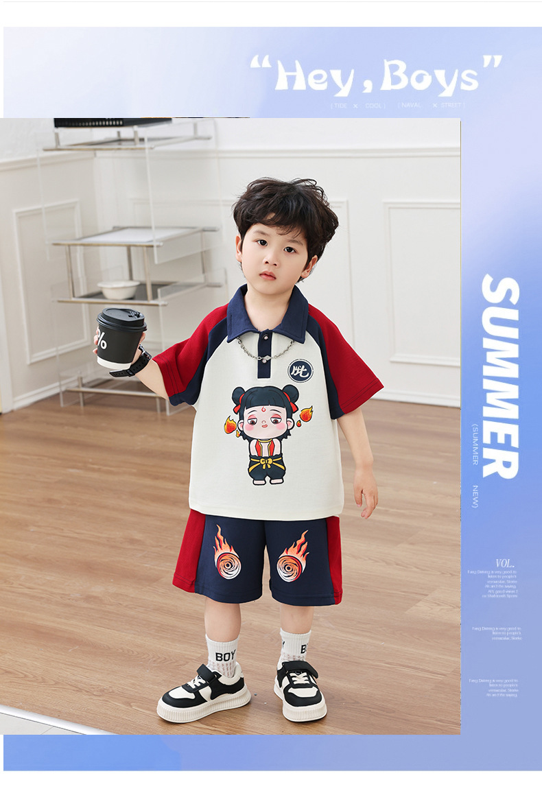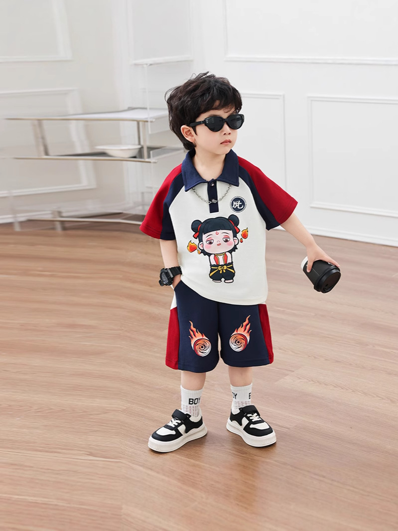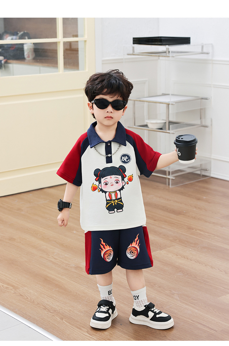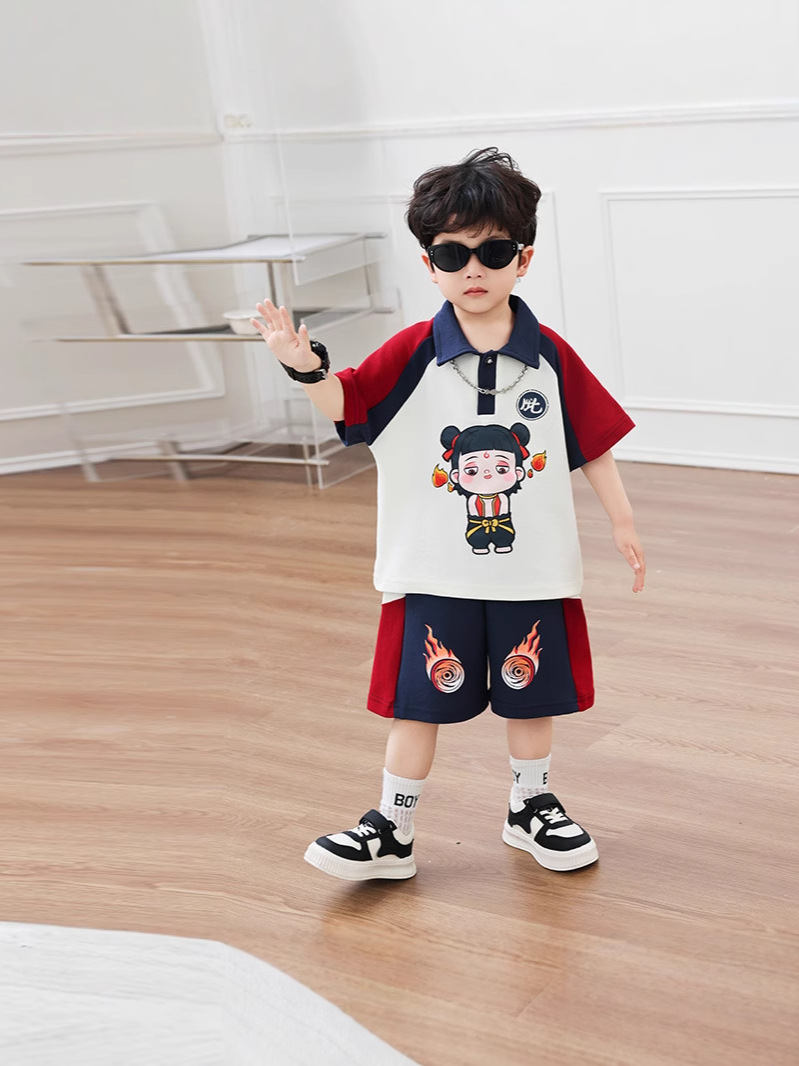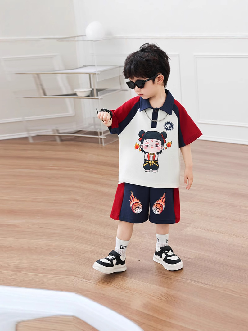 Boys' Cotton Nezha Light-Up Summer Cool Suit New Children's Cool and Handsome Sports Breathable Wear-Resistant Cartoon Solid Color
