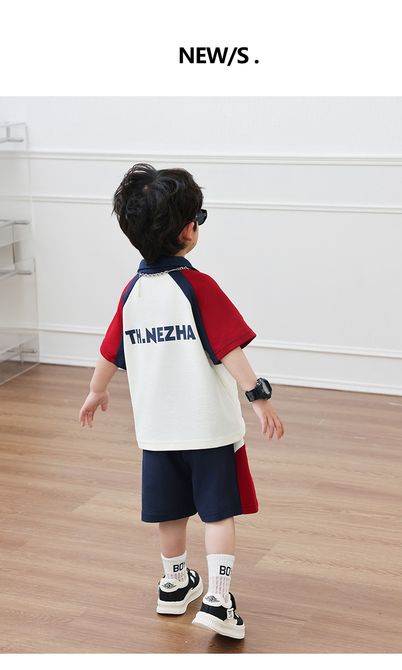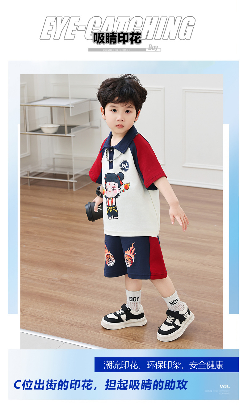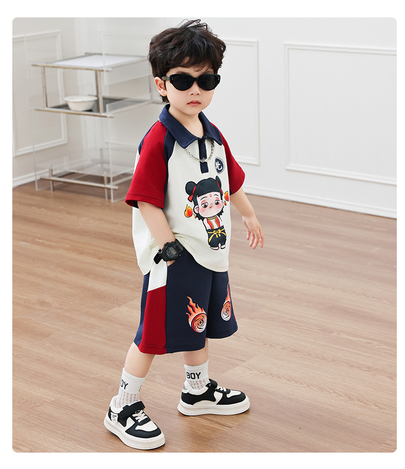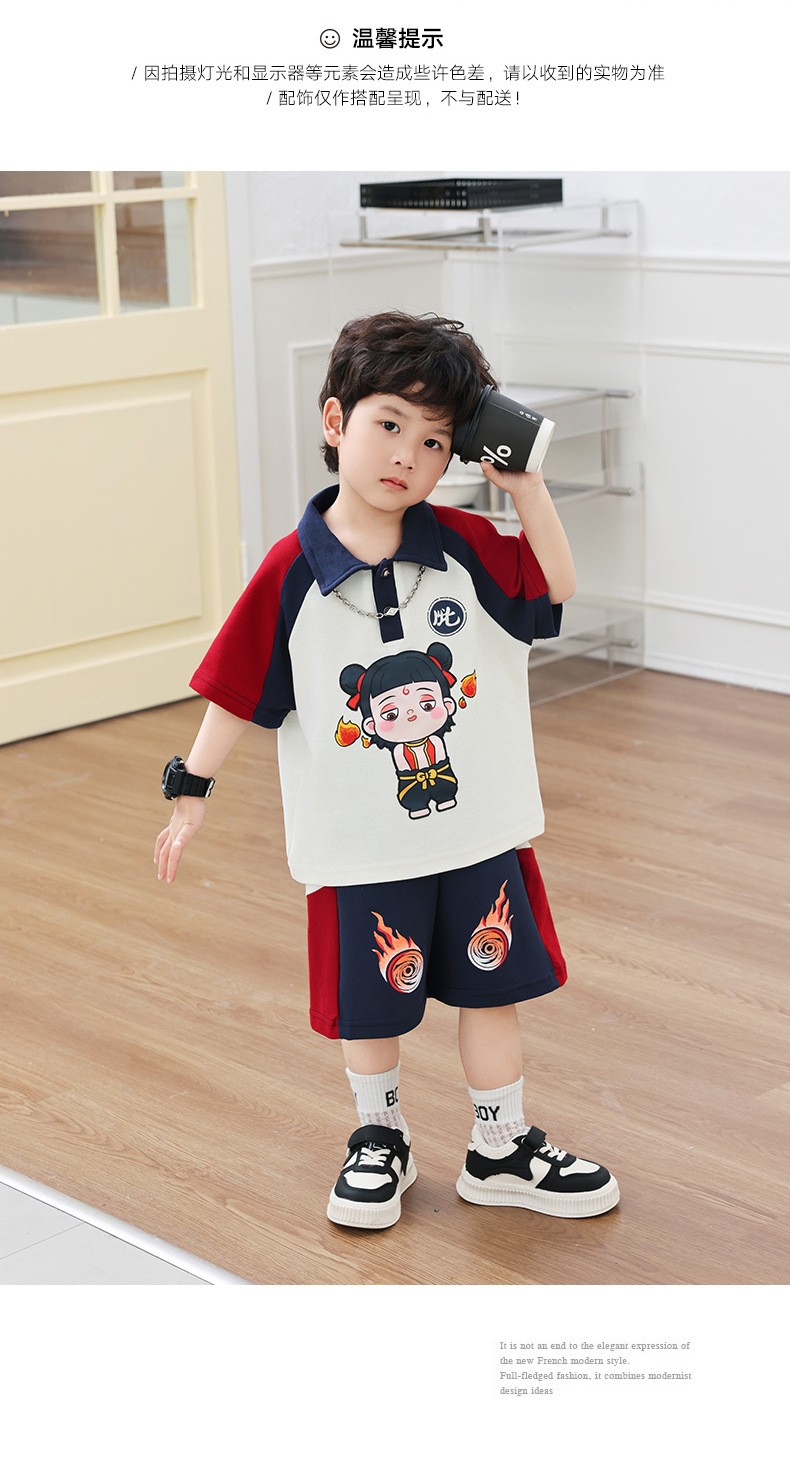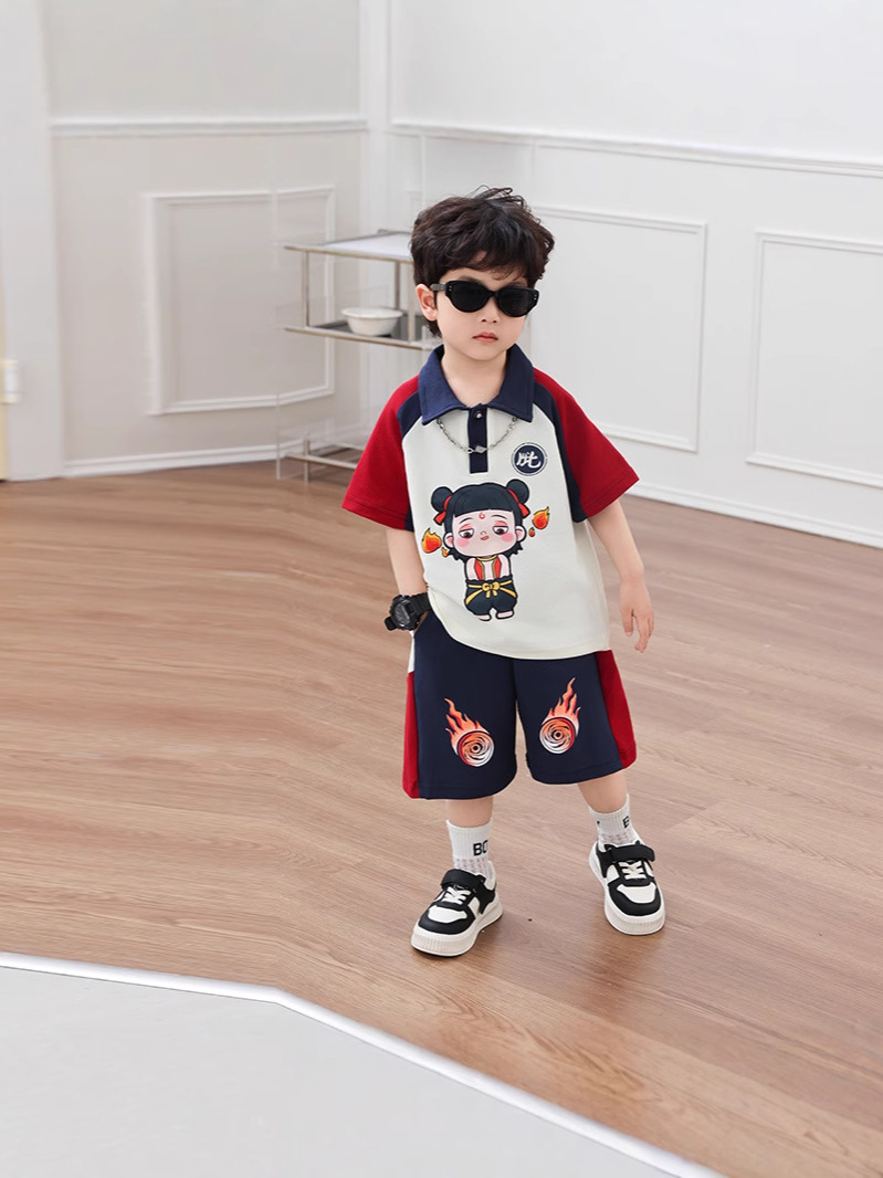 Boys' Cotton Nezha Light-Up Summer Cool Suit New Children's Cool and Handsome Sports Breathable Wear-Resistant Cartoon Solid Color