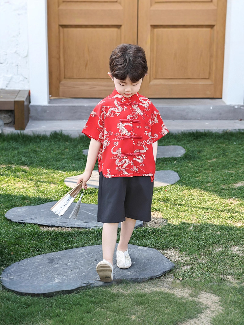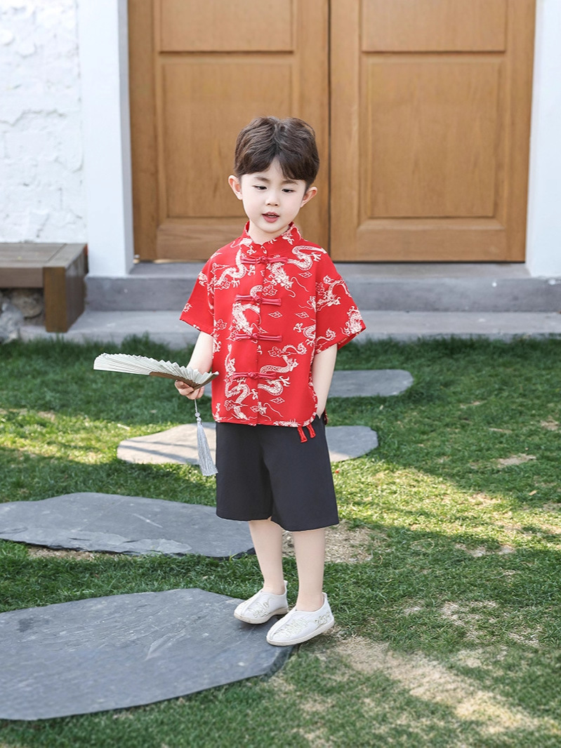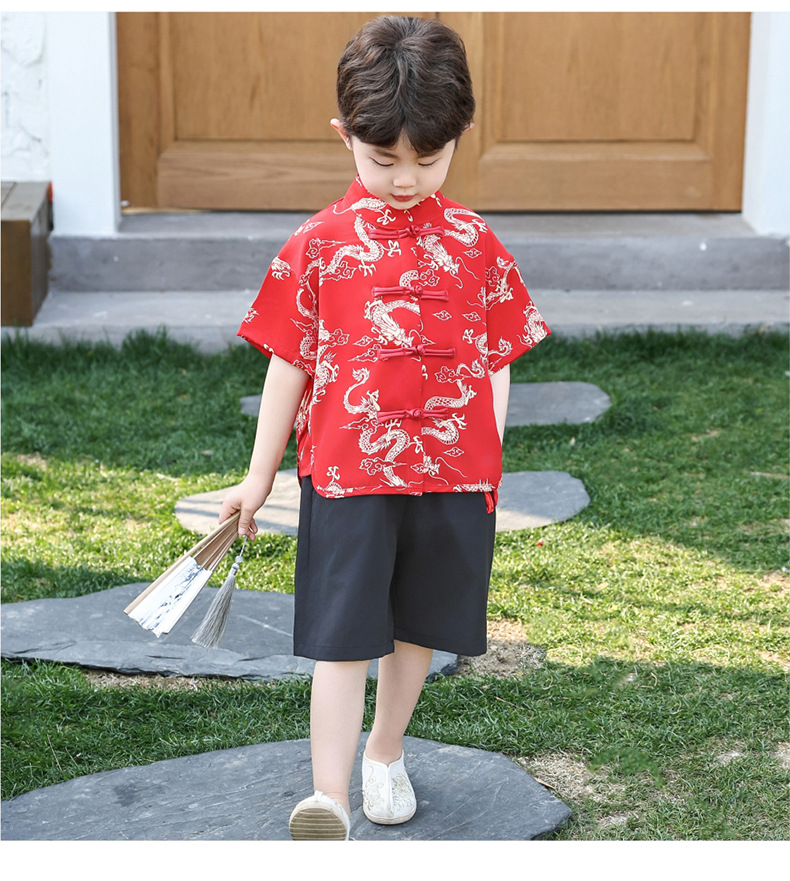 Boys' Summer Thin and Cool Hanfu, Stylish New Chinese-Style Ancient Costume, Summer National Style Tang Suit for June 1St Performance