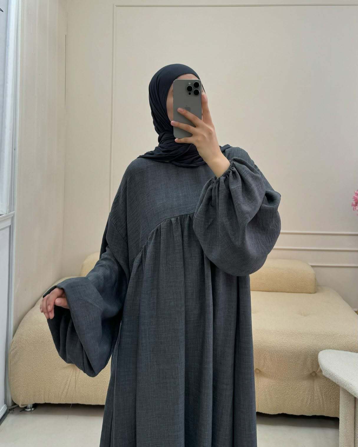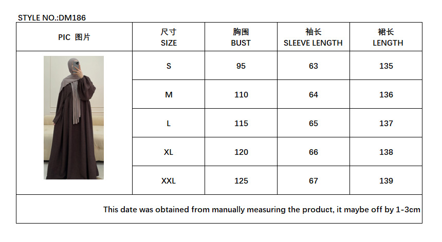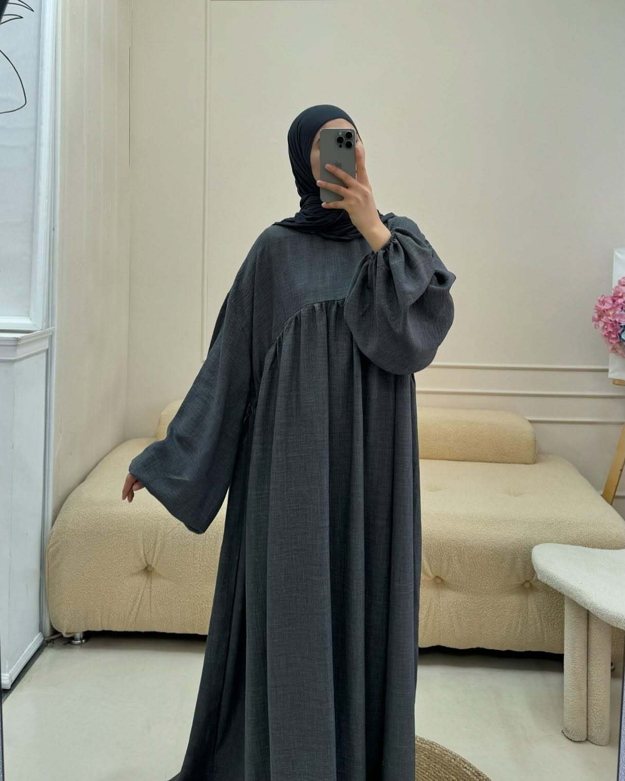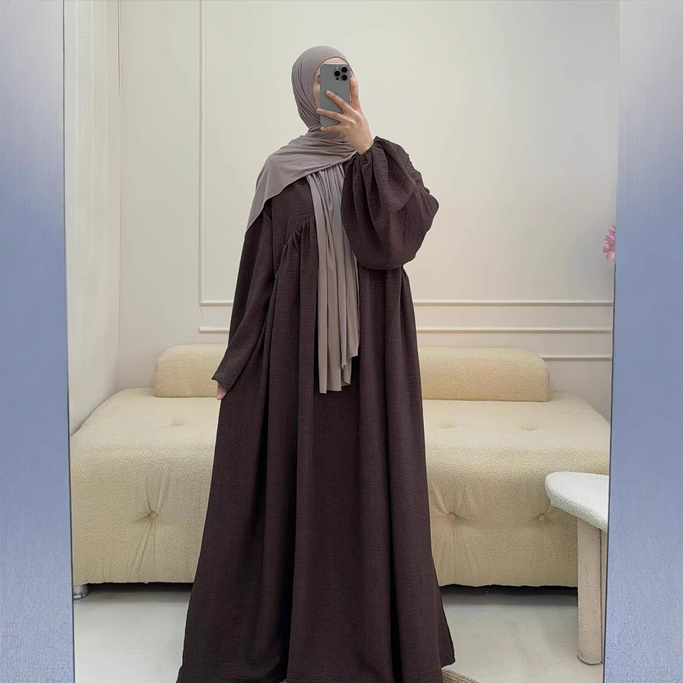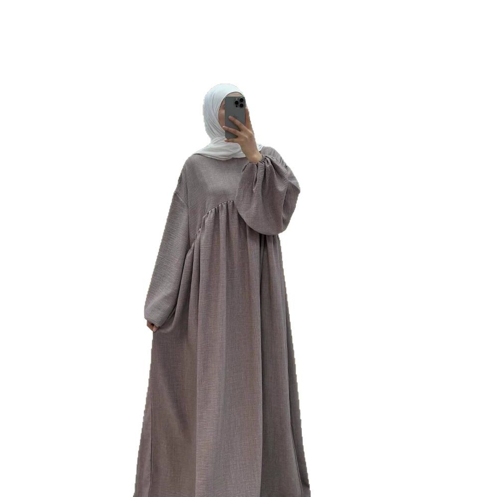 European and American Cross-border Foreign Trade Spring and Autumn New Muslim Women's Middle East Robe Solid Color Loose Pullover dress