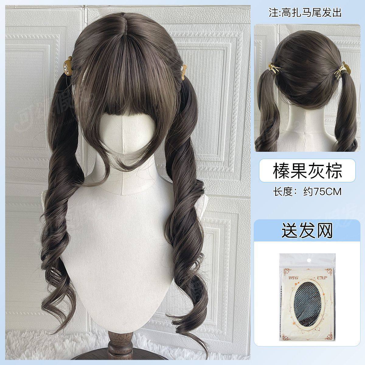 【low ponytail twin tails】hazelnut ash brown + free hair net