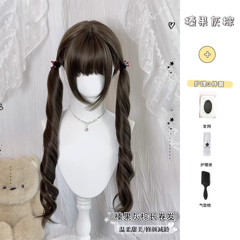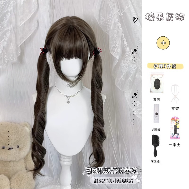 [get a double ponytail] hazelnut gray brown + five-piece care set