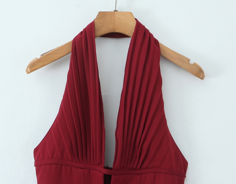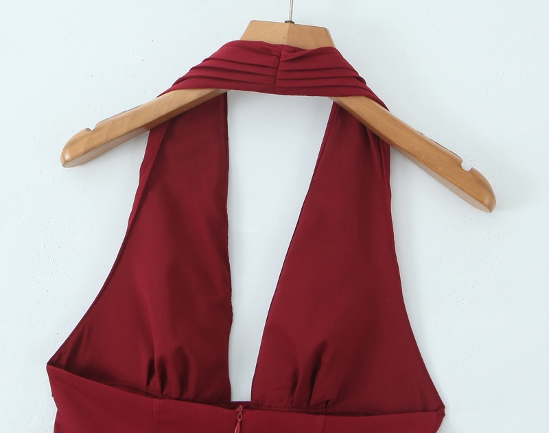 Kaopu Za European and American Sexy Deep V Halter Dress 2025 Spring and Summer New Pure Color Sleeveless Waist Slimming Look