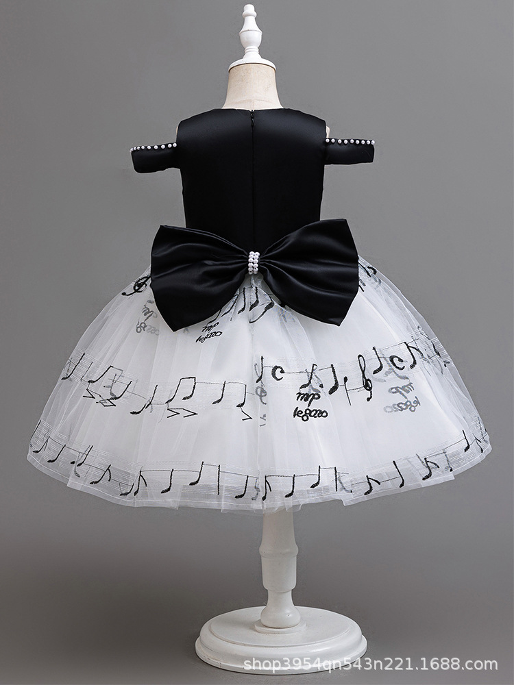 Children's Mesh Embroidery Color Thread Lace Embroidery Musical Notes Children's Clothing Dress Dress Performance Clothing Tutu Skirt