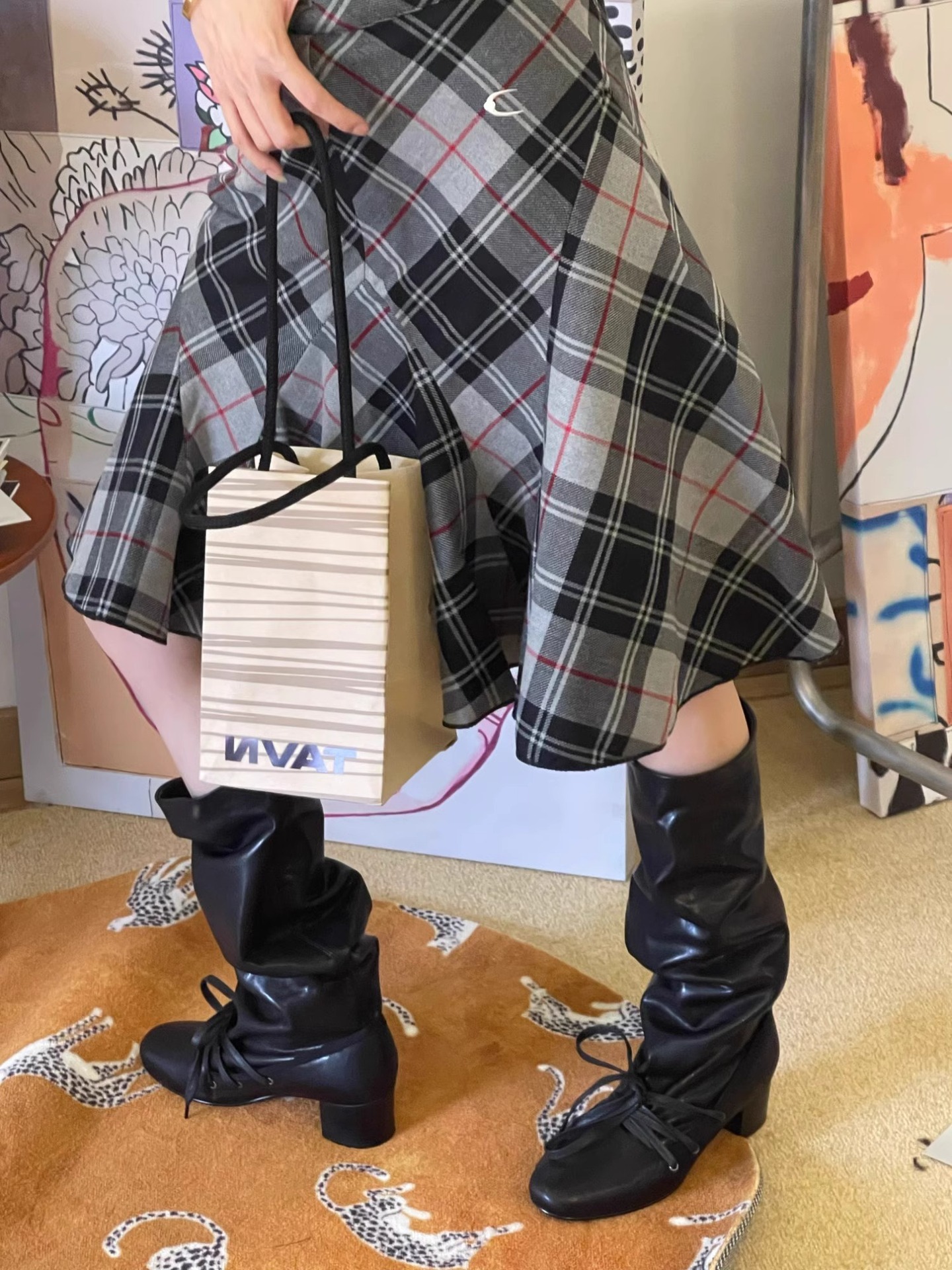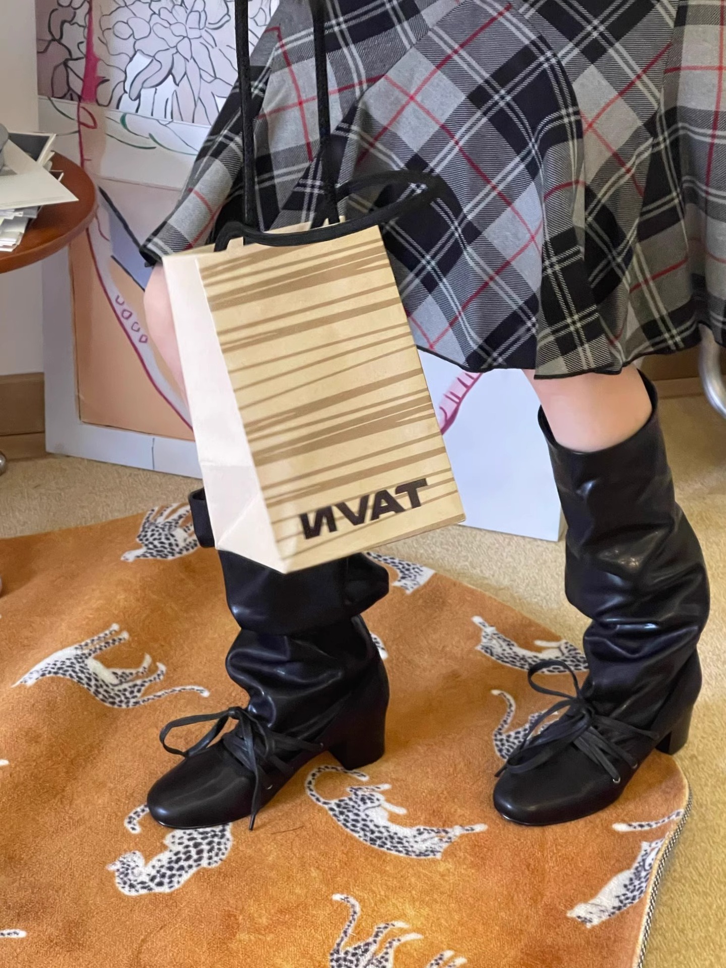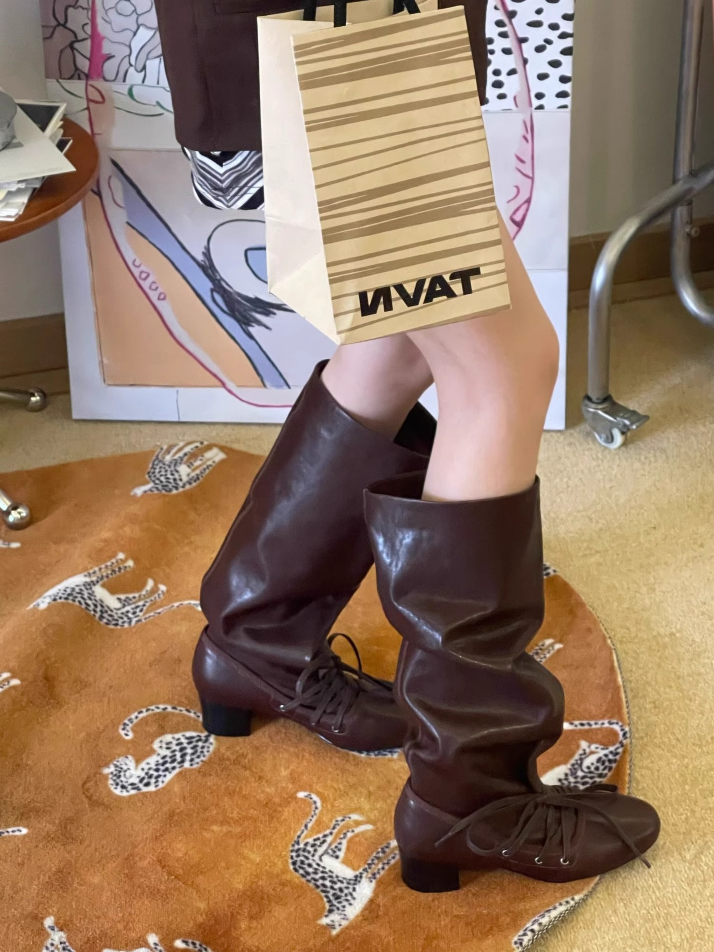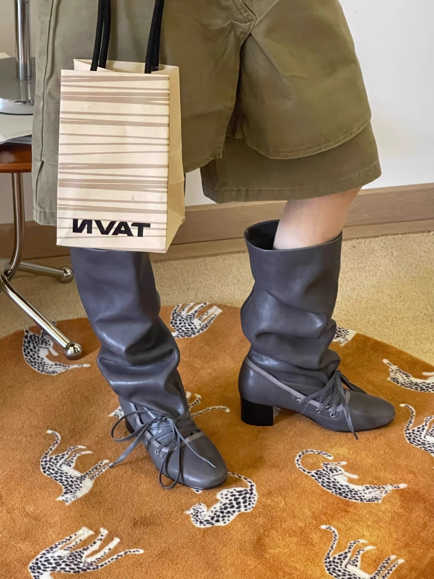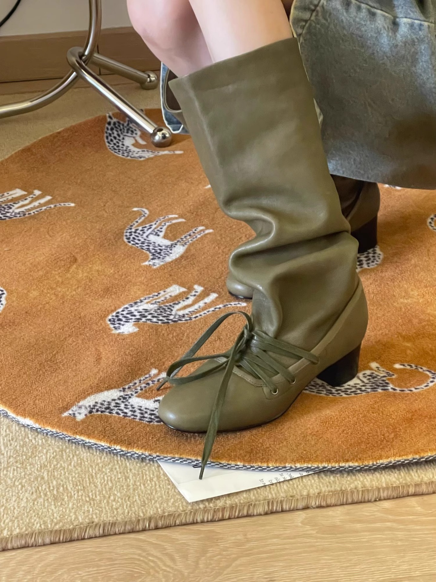 Retro Strappy New Niche Design Trouser Boots Thick Heel Thick Sole Boots No More Than Knee Pointed Toe Lace up Knight Boots