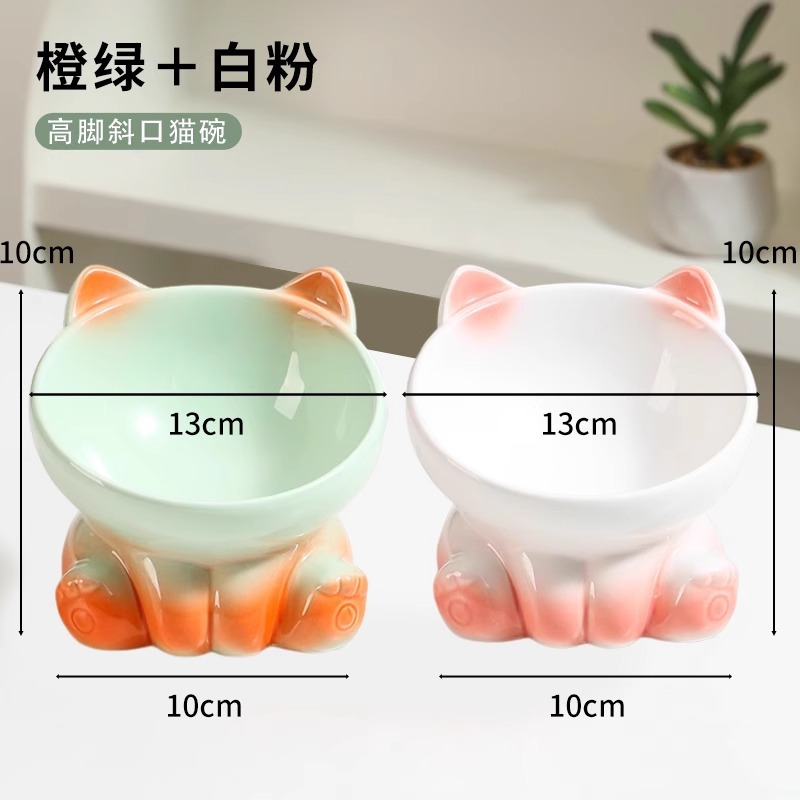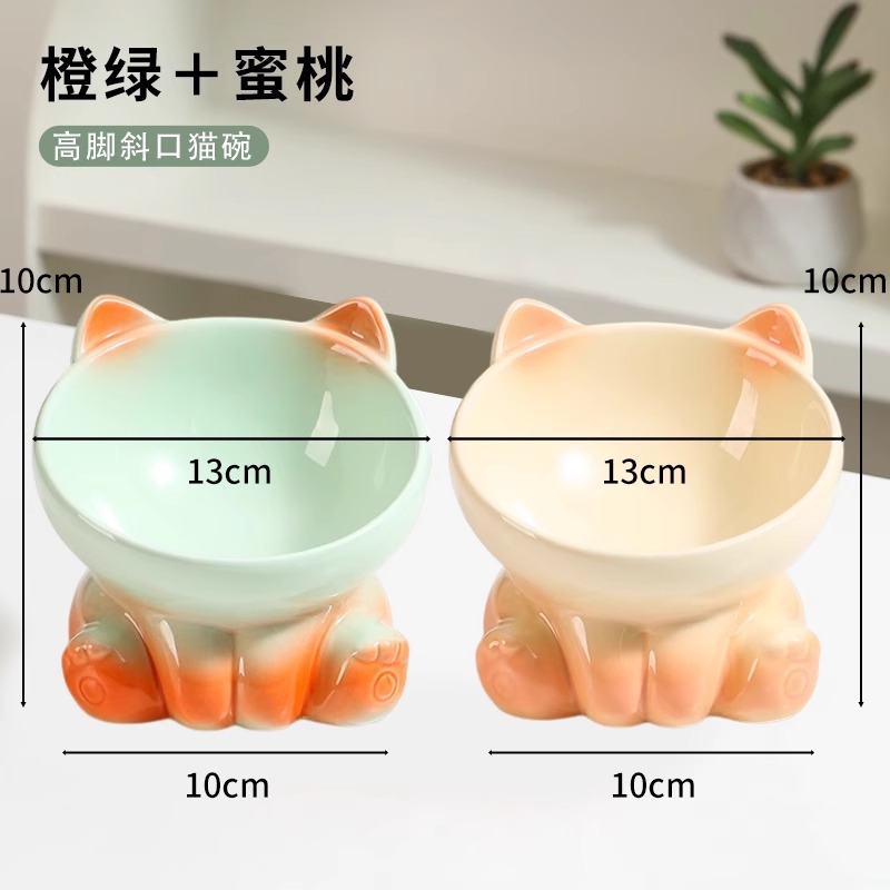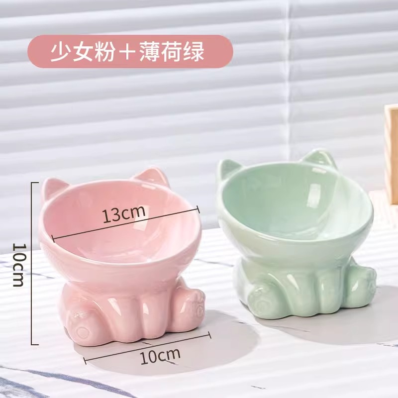 [double bowl] tall bowl with slanted mouth girly pink + mint green