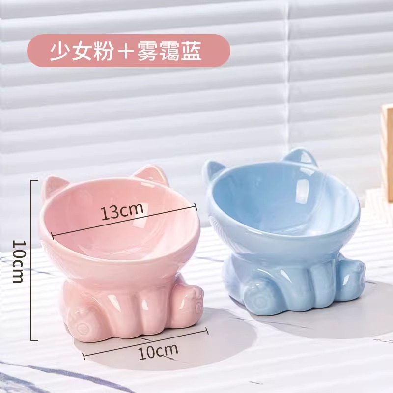 [double bowl] tall slanted bowl girly pink + haze blue