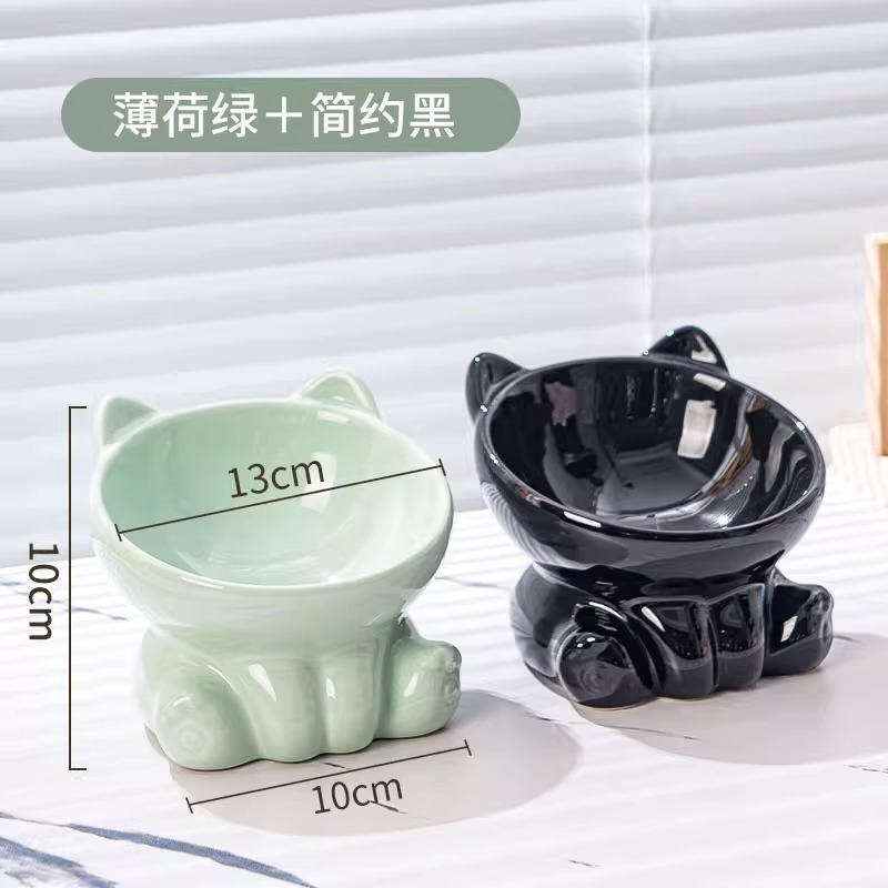 [double bowl] tall slanted bowl mint green + simple black