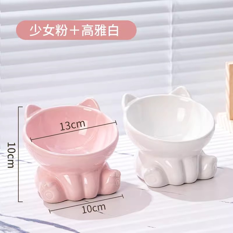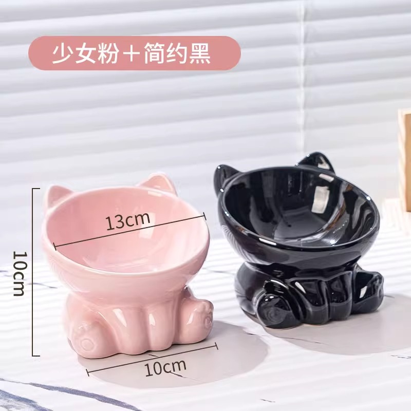 [double bowl] tall bowl with slanted mouth girly pink + simple black
