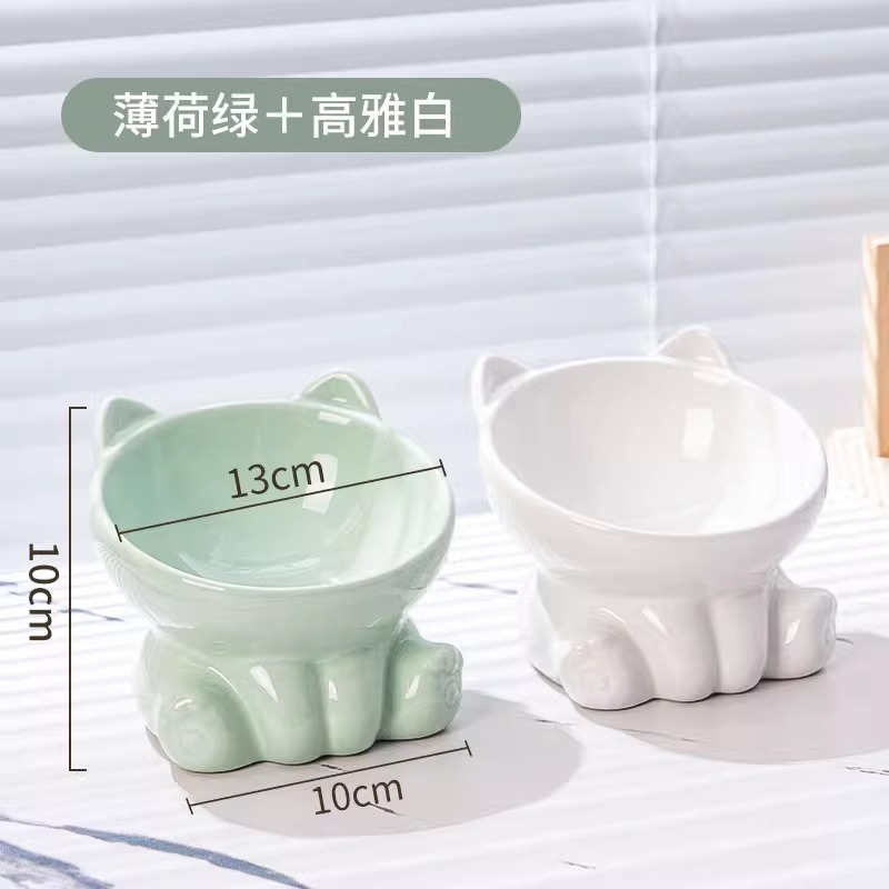 [double bowl] tall slanted bowl mint green + elegant white