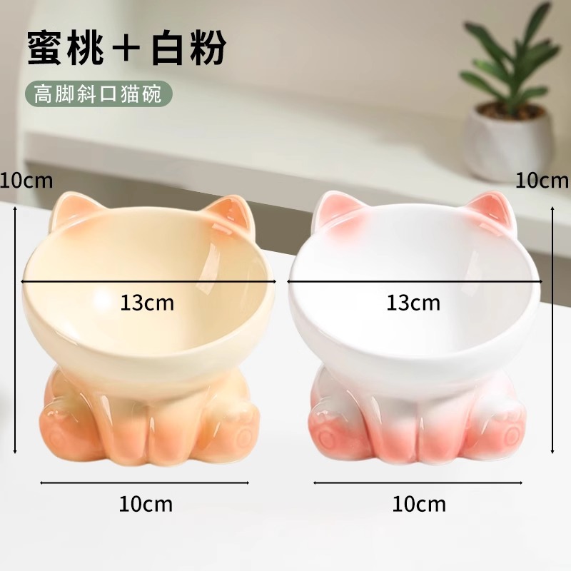 [double bowl] tall bowl with slanted mouth girly pink + elegant white