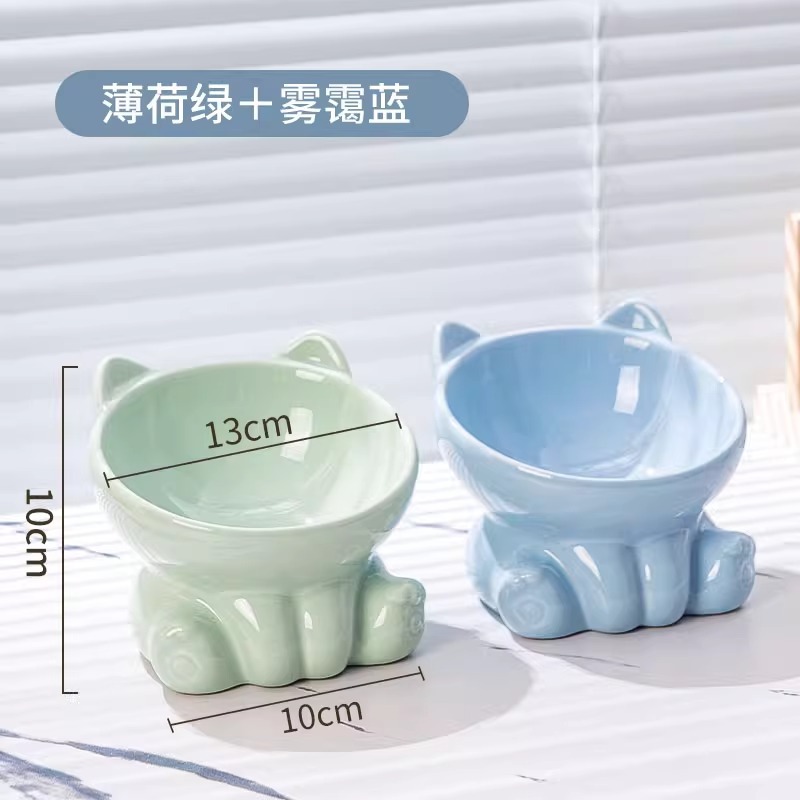 [double bowl] tall slanted bowl mint green + haze blue