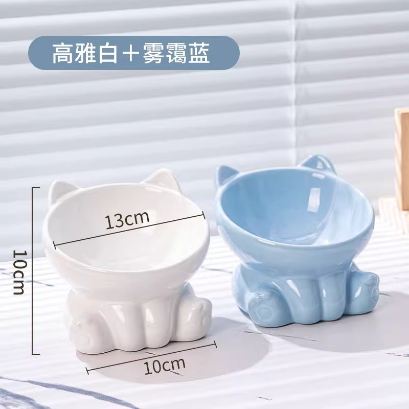 [double bowl] tall slanted bowl elegant white + haze blue