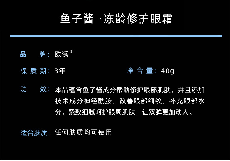 Ouyou Caviar Age-Freezing Repair Eye Cream Stay up Late Savior Lifting Firming Delicate Eye Mask Repair Eye Cream