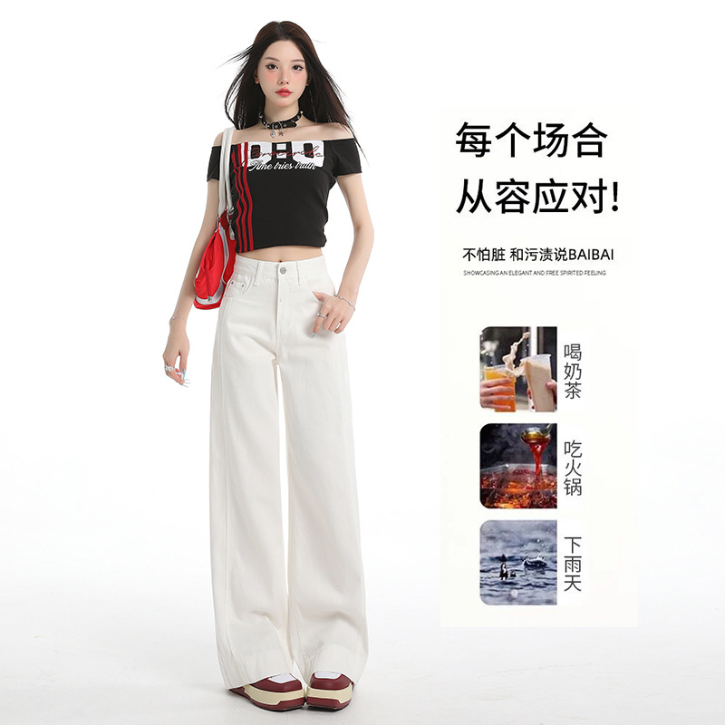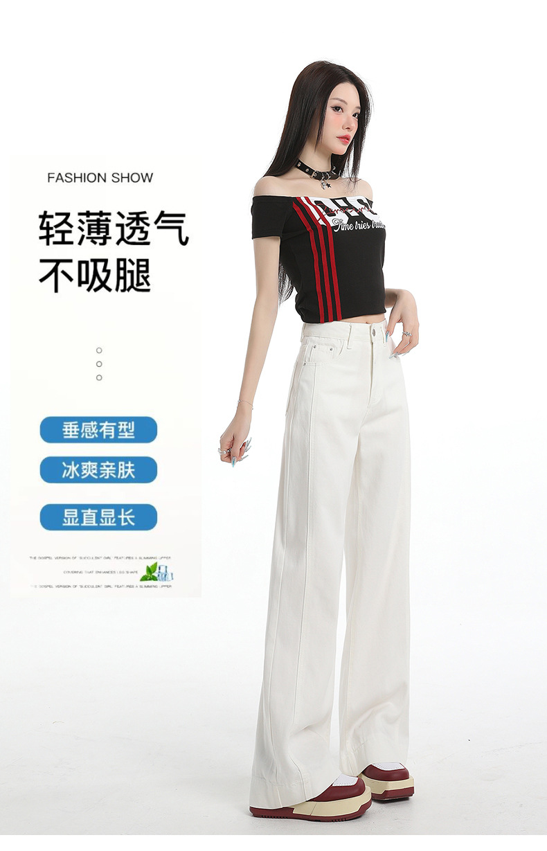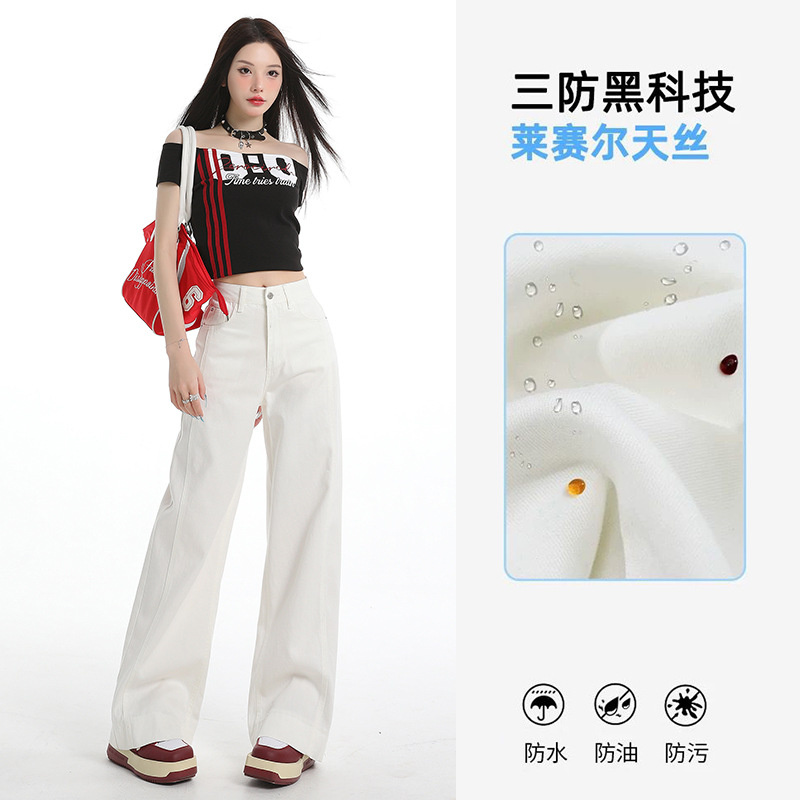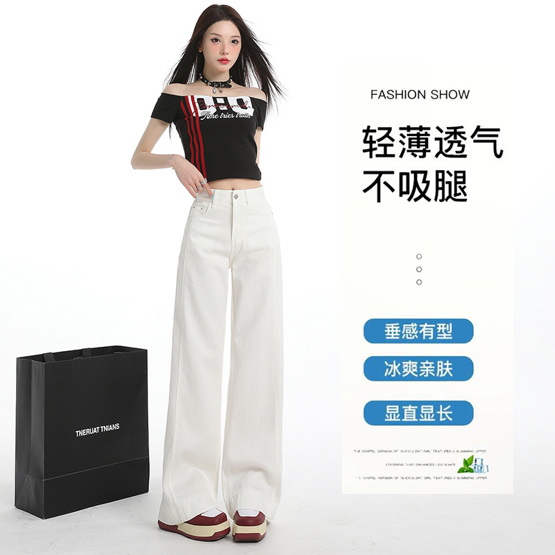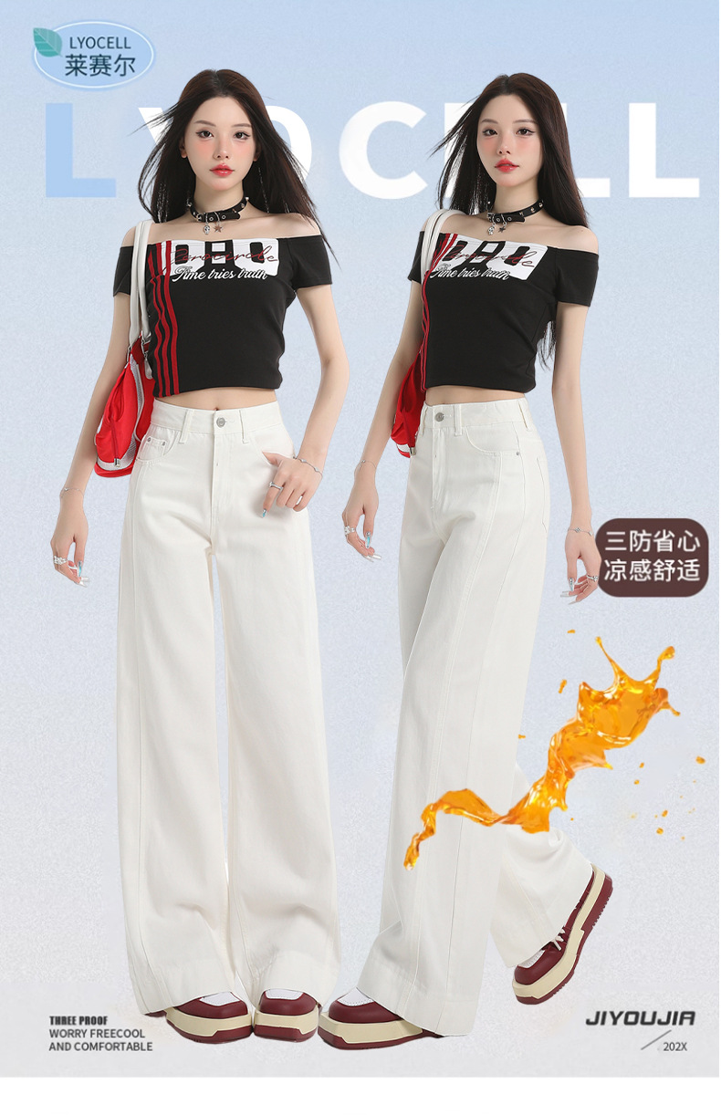 White Tencel Wide-Leg Jeans for Women, Summer 2026 New Model, Triple Protection Design, Drapey and Slimming, Straight-Leg Pants for Petite Figures