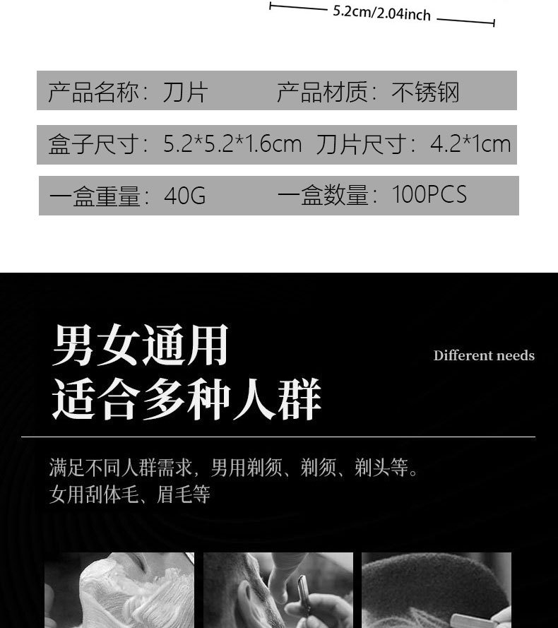 Shaving Razor Blade, Eyebrow Trimming Razor, Stainless Steel Blade, 100 Pieces, Disposable Sharp Blade