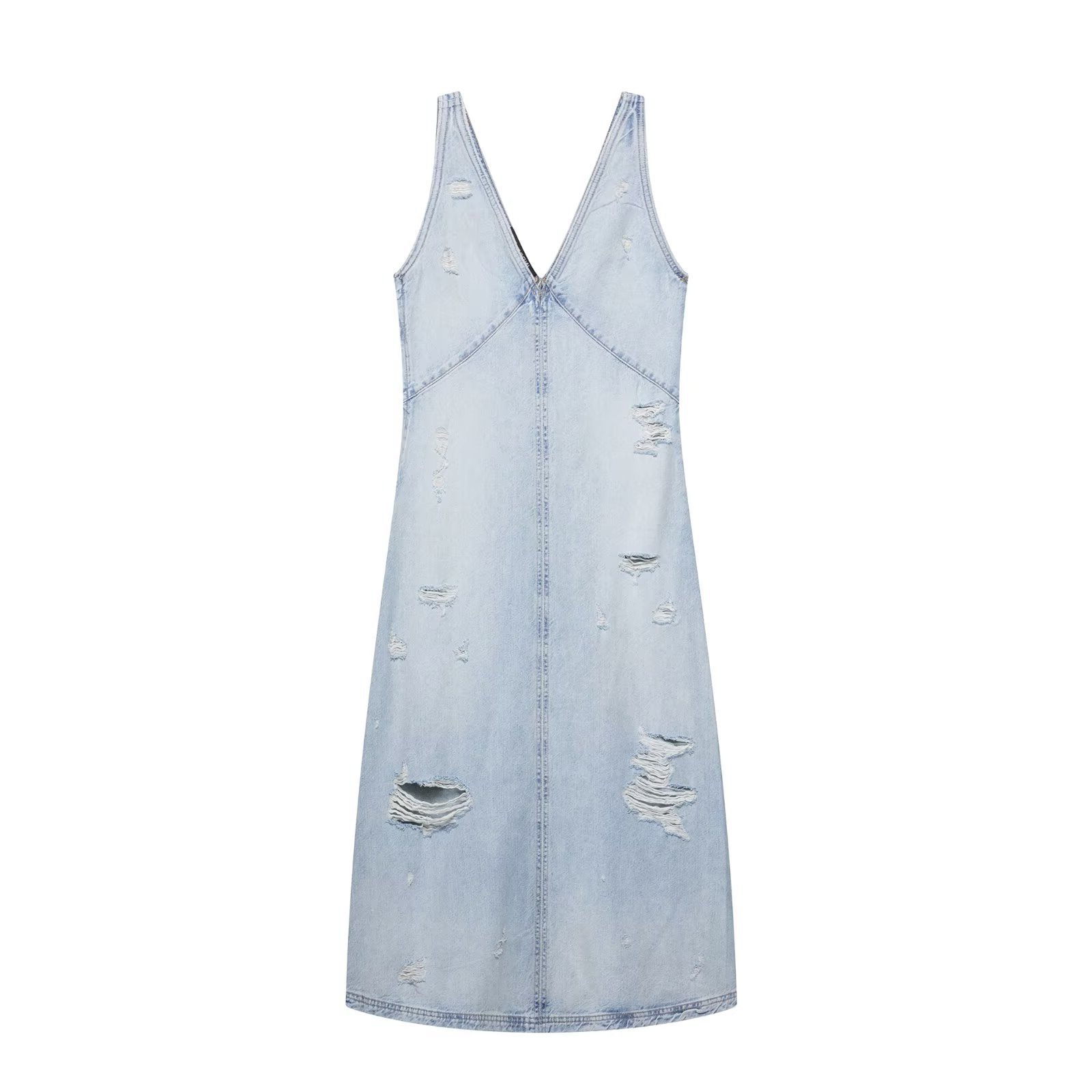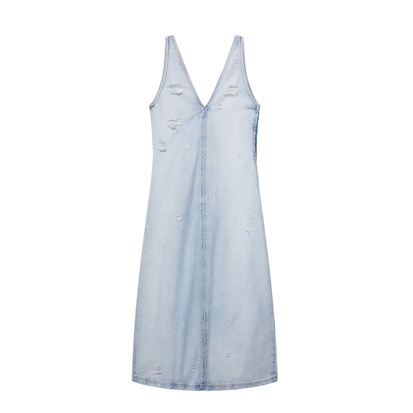TAOP & ZA summer new women's commuter style sleeveless slim hole Denim dress 4365082