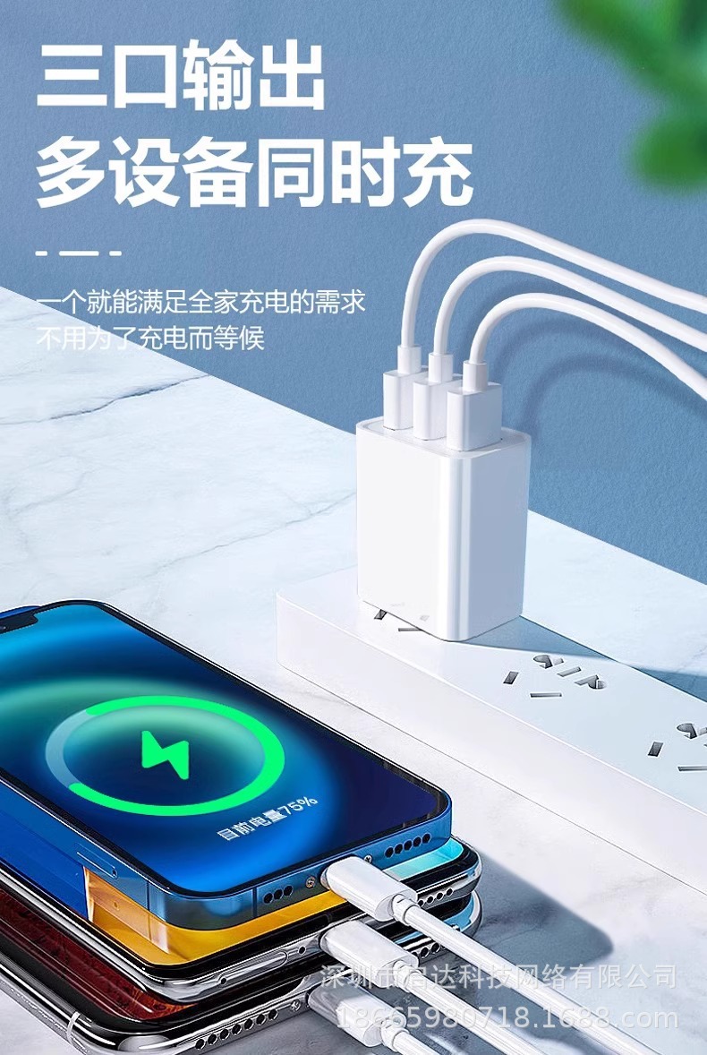 [3c certification] 5v2.4a charging head with three ports [neutral packaging]