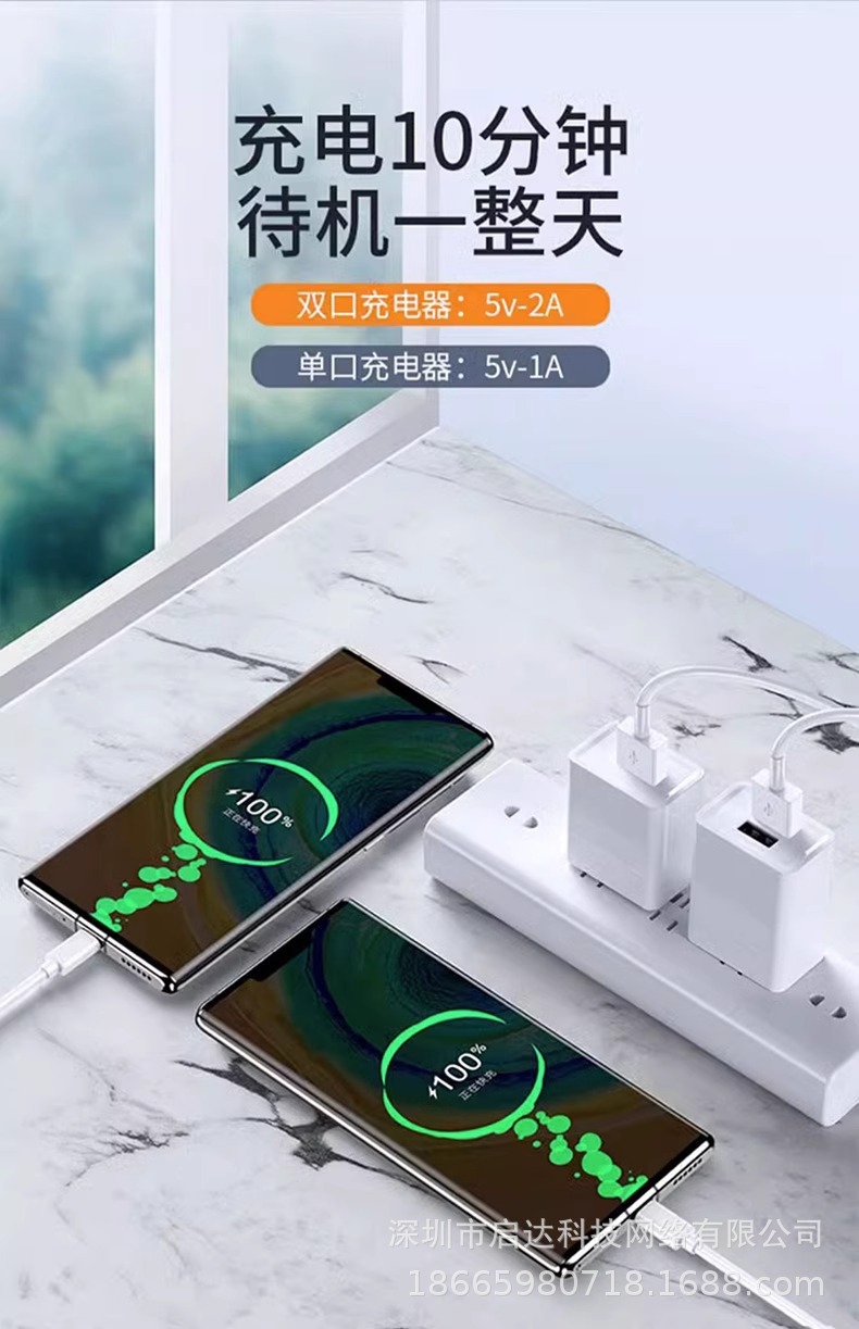 [3c certification] 5v2a charging head dual port + 1m android fast charging cable [neutral packaging]